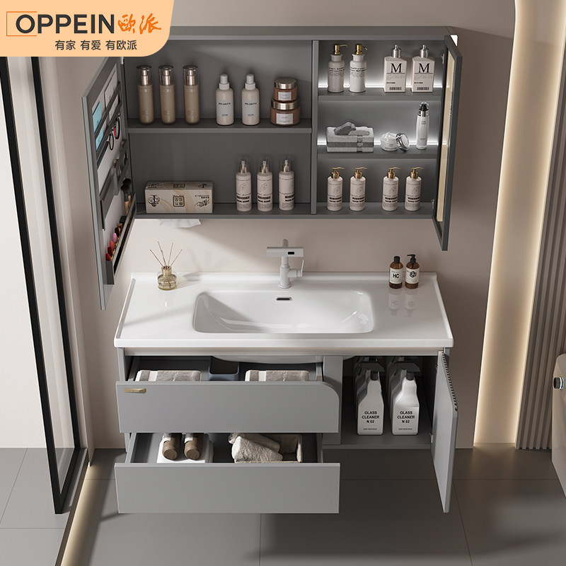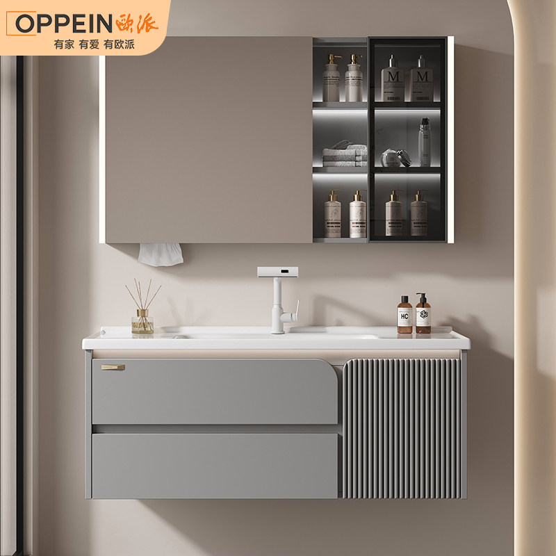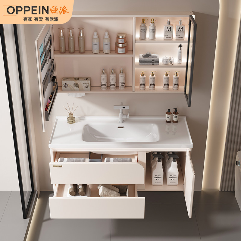 欧派浴室柜组合奶油风现代卫生间陶瓷一体盆洗脸盆洗漱台卫浴柜