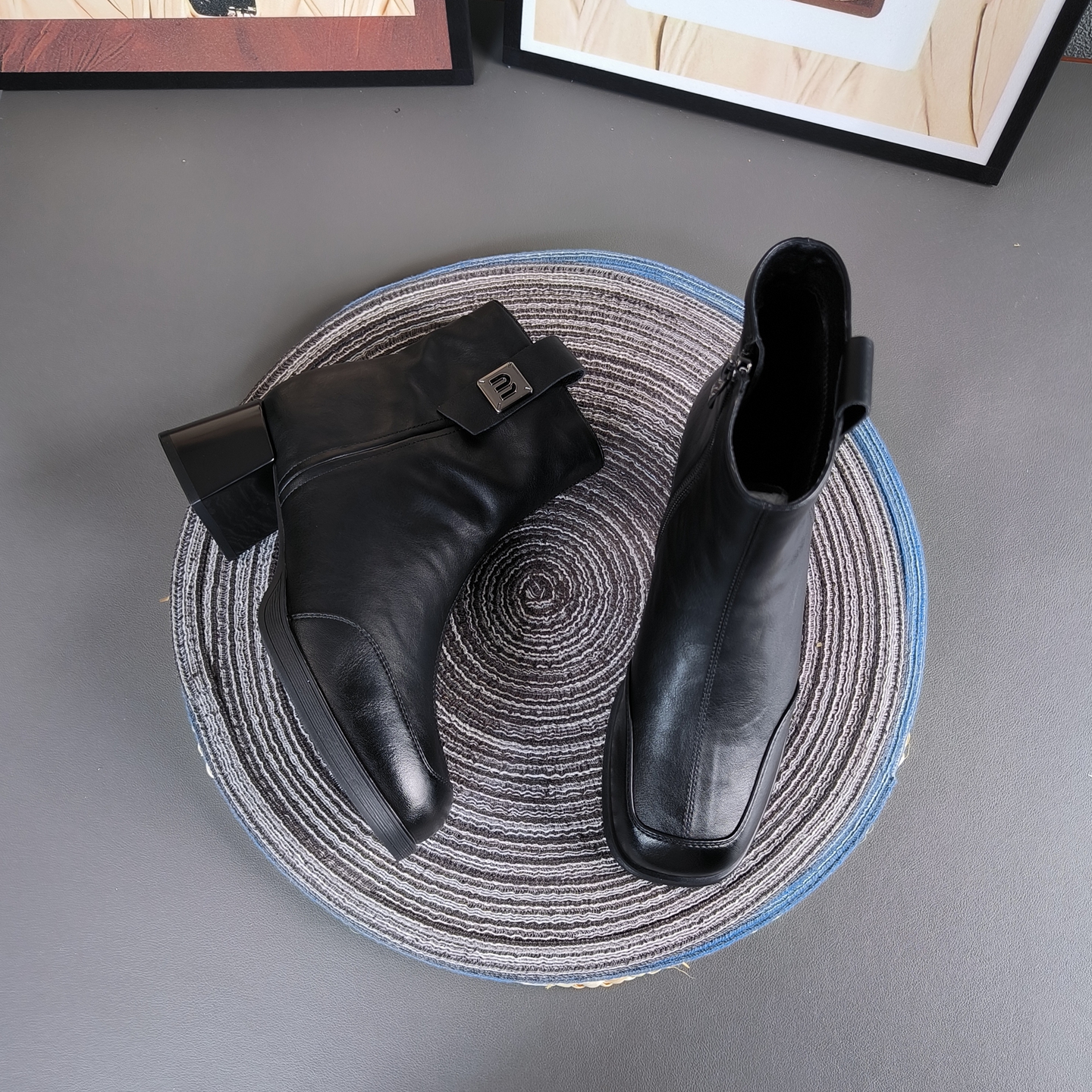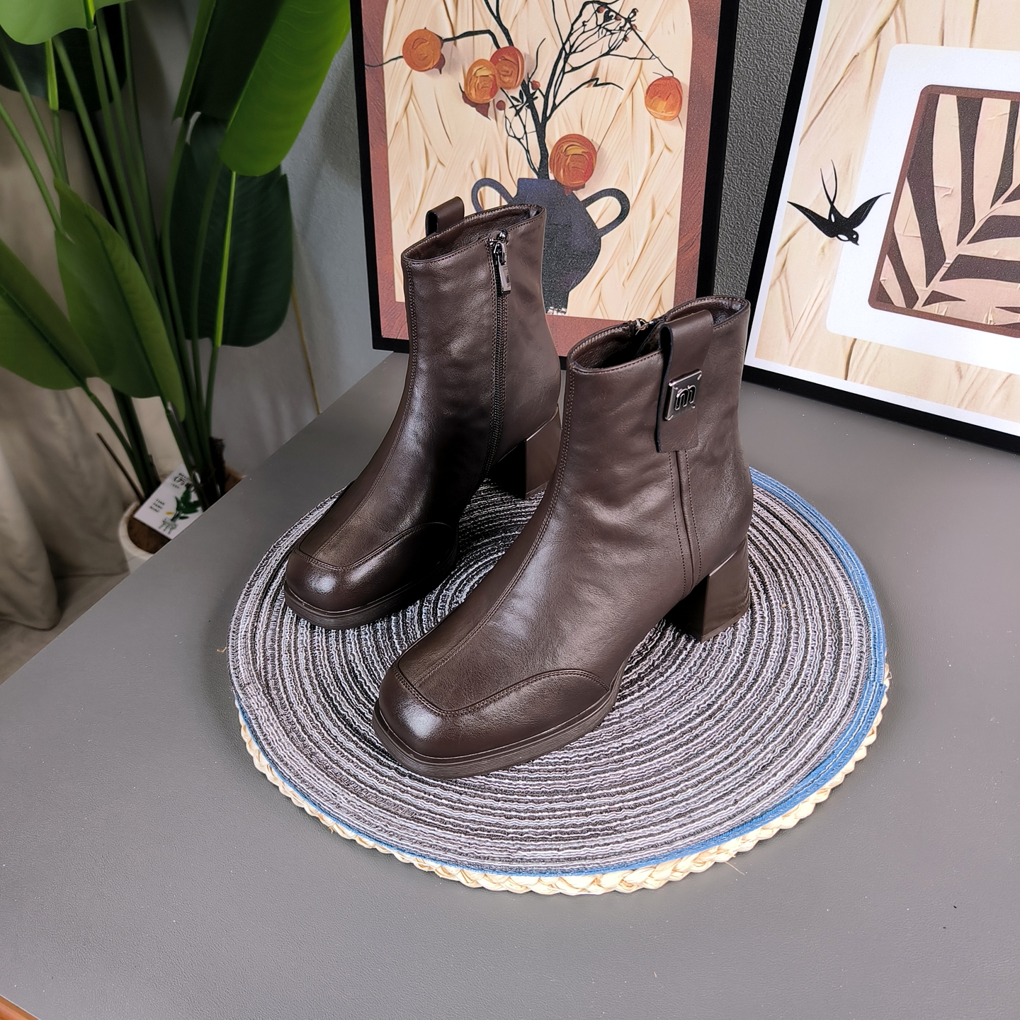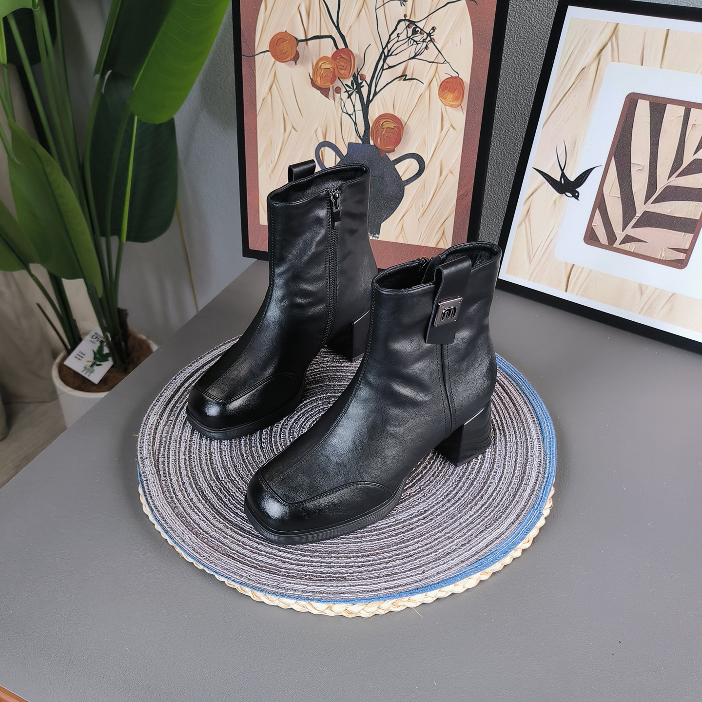 心朵莉2025新款粗跟短靴女方头高跟马丁靴女显脚瘦切尔西靴女靴子