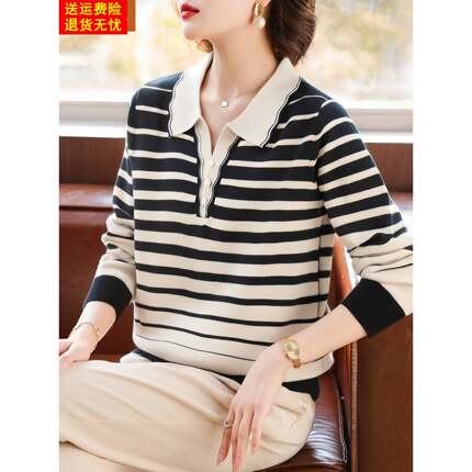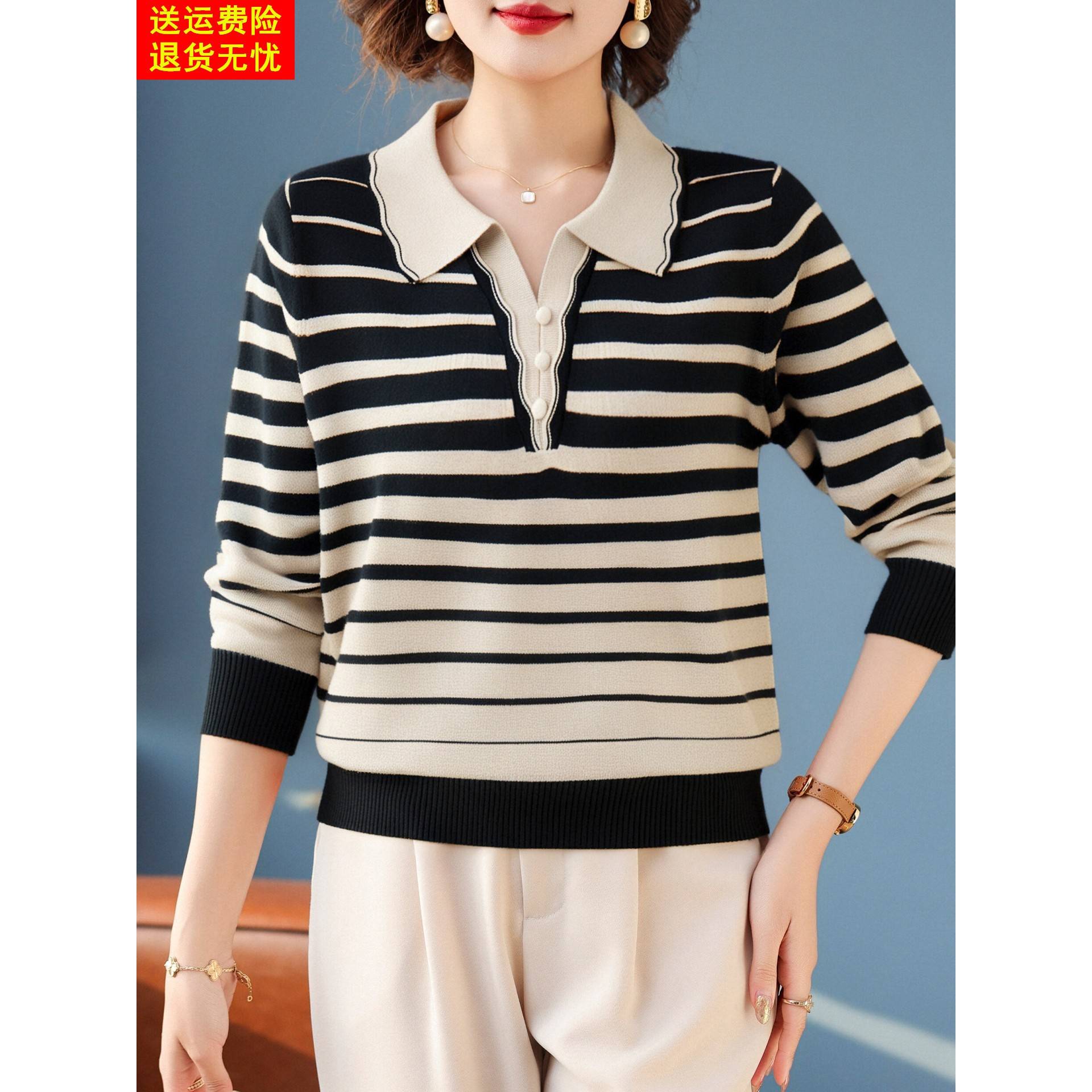 妈妈洋气条纹针织打底小衫中年女装秋装40岁50中老年春秋长袖上衣