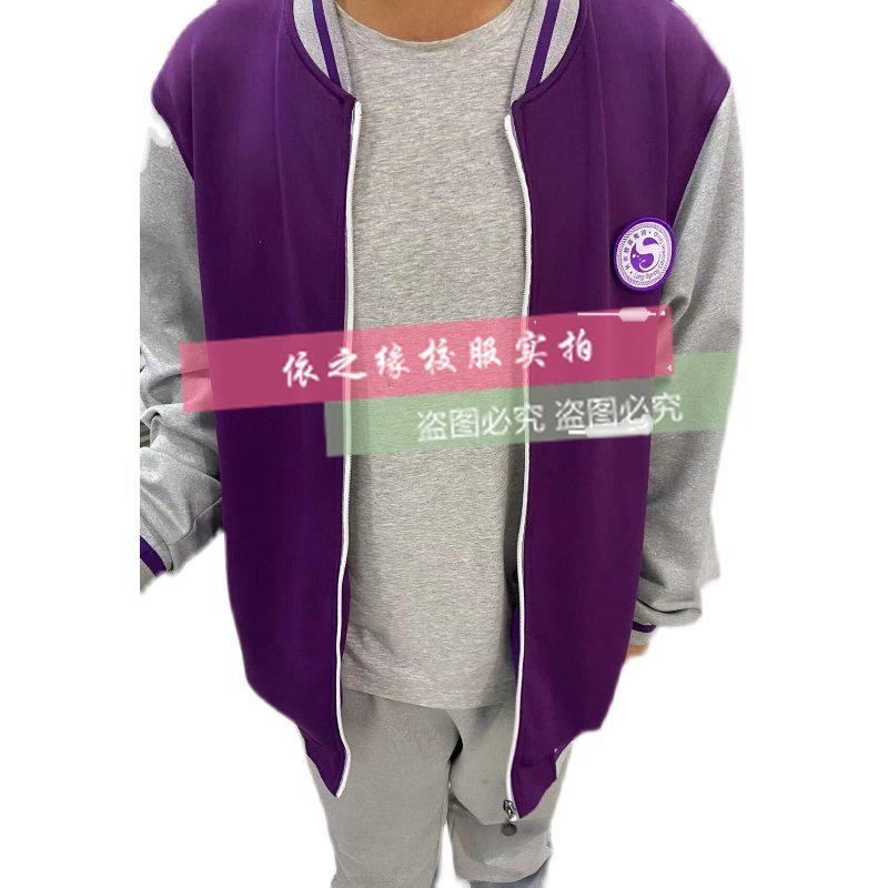 衡水中学春秋冬季校服紫色外套休闲套装灰色运动裤大码定制