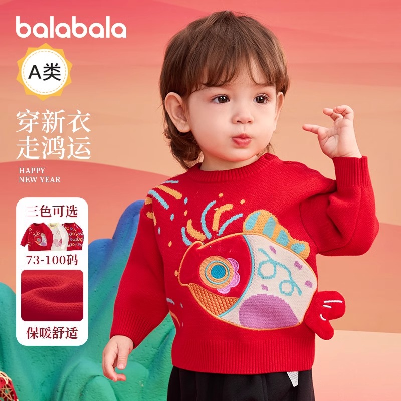 巴拉巴拉婴儿毛衣宝宝绣花打底衫