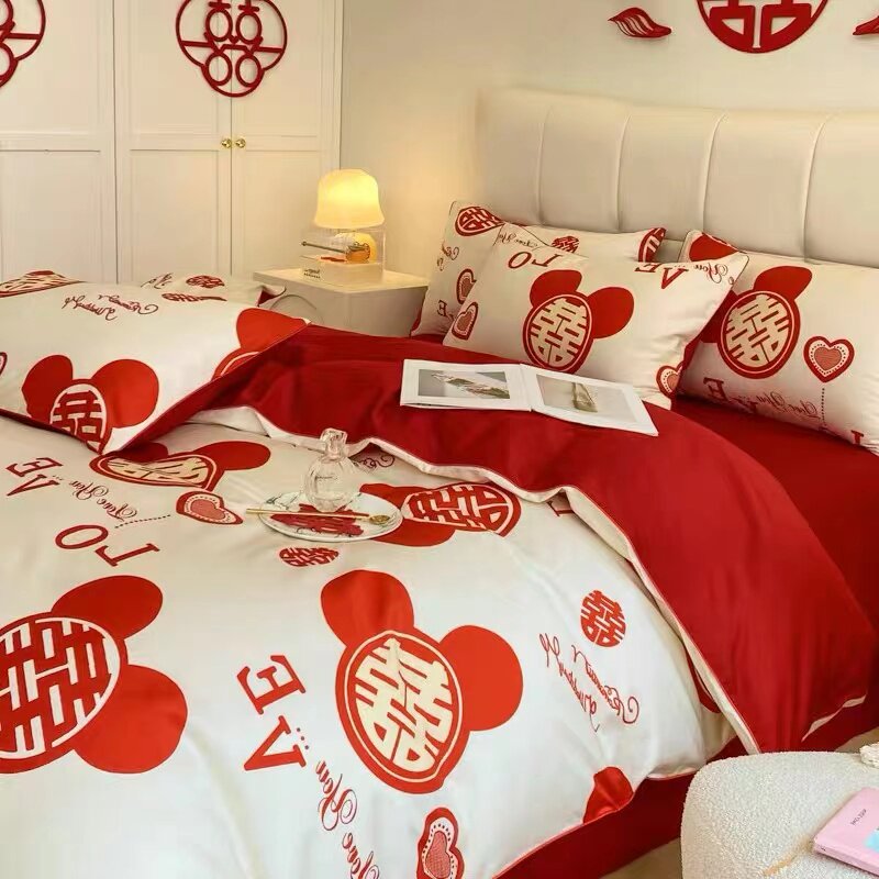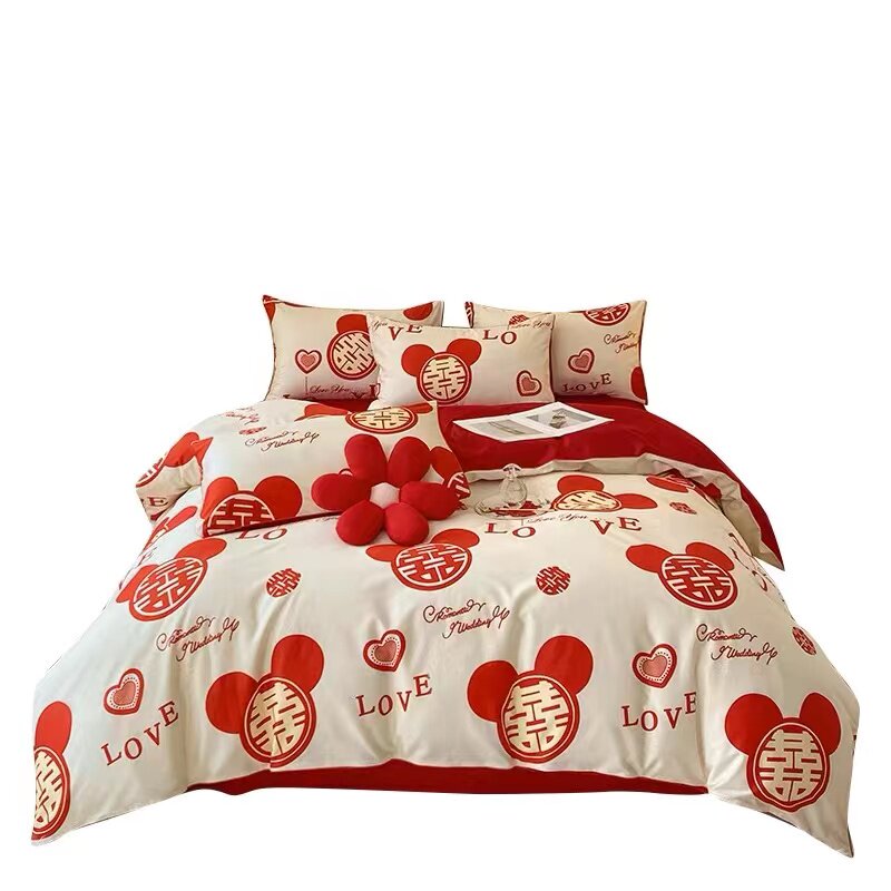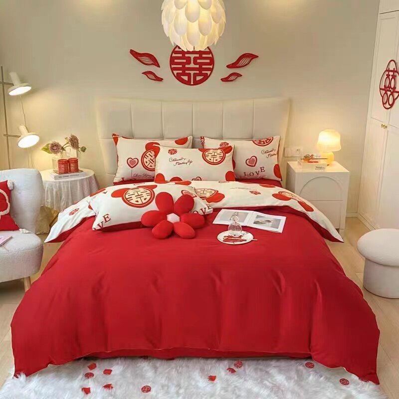 极速喜字婚庆四件套大红床单被套新婚简约少女心R结婚婚房备婚床