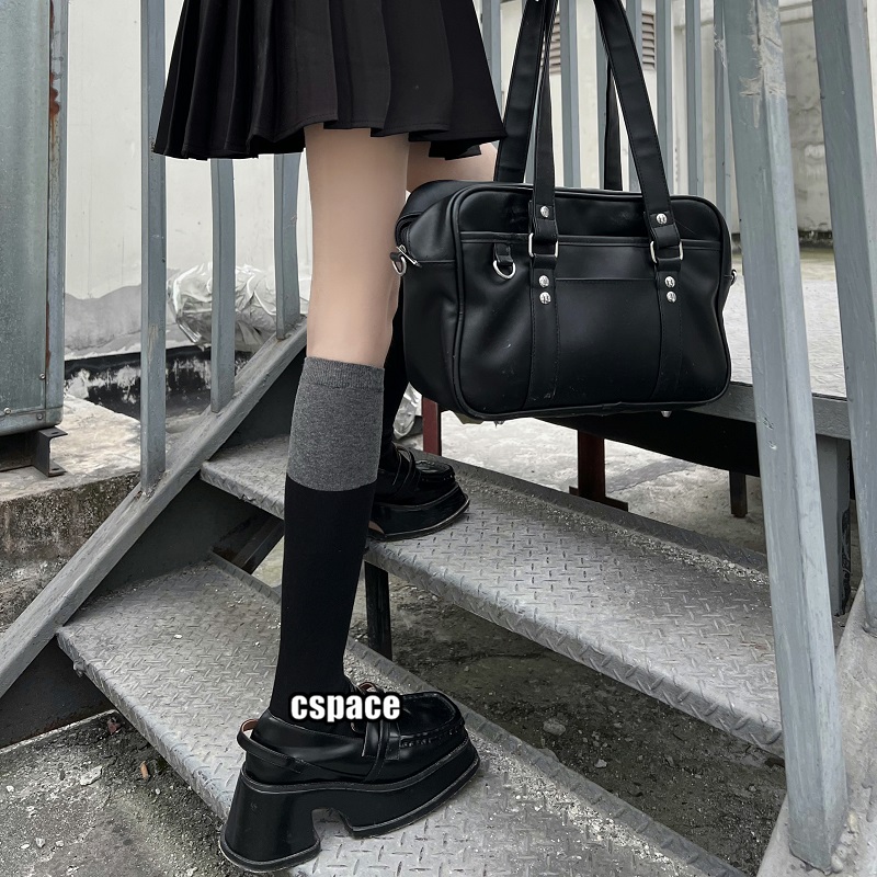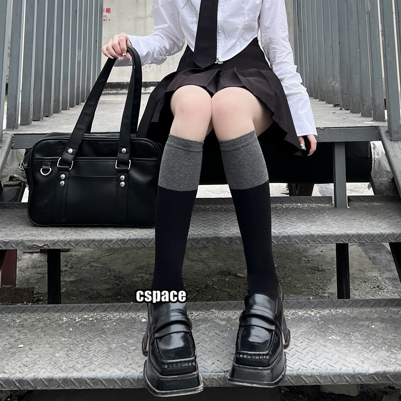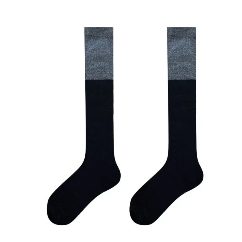 拼色过膝袜女春秋款中筒袜子黑灰拼接半截长筒大腿高筒显瘦小腿袜