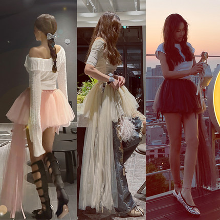 芭蕾风小天鹅不规则叠搭纱裙浪漫重工网纱蓬蓬半身裙蛋糕裙仙女裙