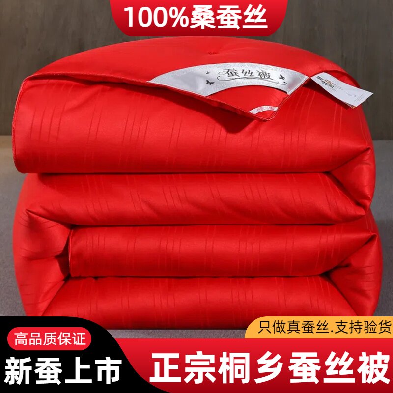 正宗桐乡蚕丝被100%正品桑蚕丝婚庆被单双人加厚秋冬季被子母被芯