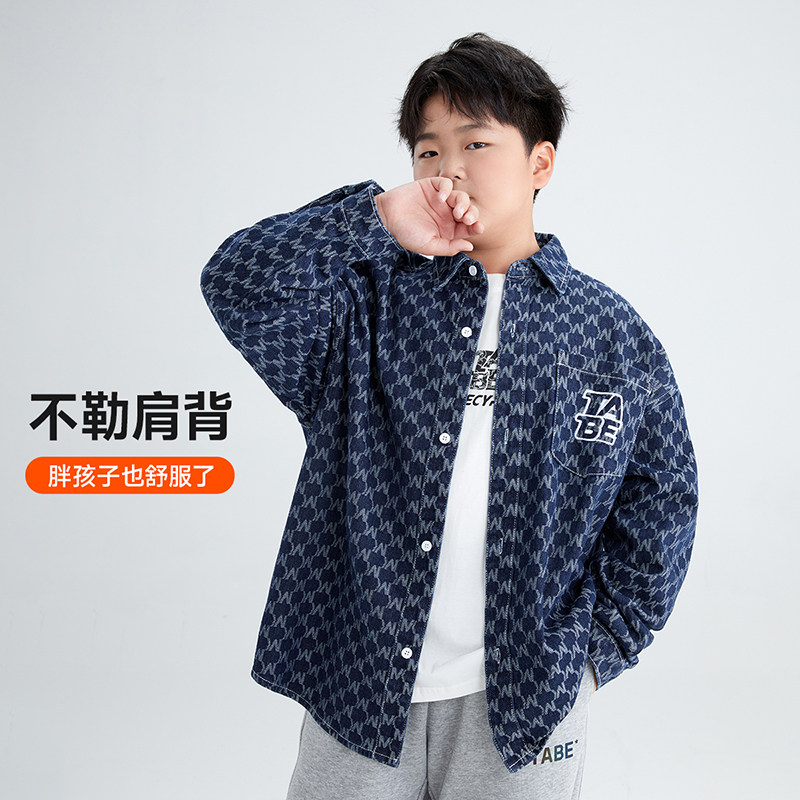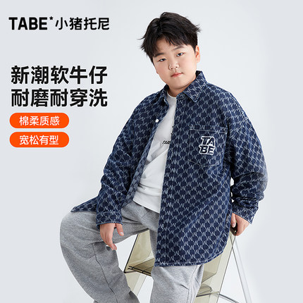 男童牛仔外套小猪托尼胖童外套春秋款大童大码胖童装男童加肥加大