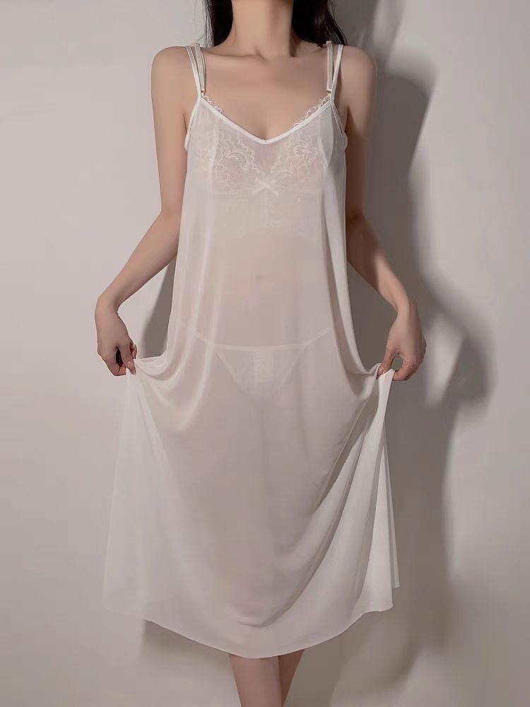 性感V领睡衣女夏季透视网纱火辣纯欲风诱惑吊带睡裙大码300斤家居