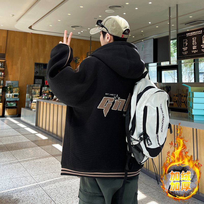 冬季青少年学生连帽棉衣男外套韩版潮流拼接撞色休闲加绒棉服袄子