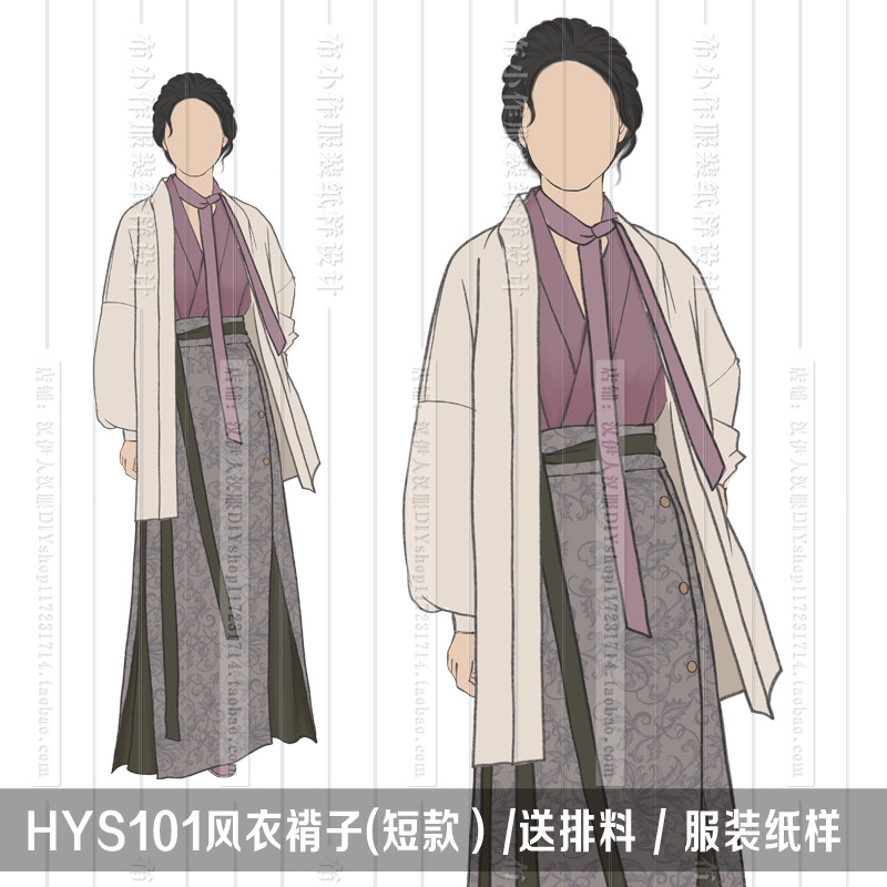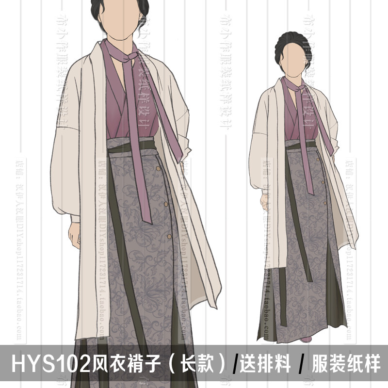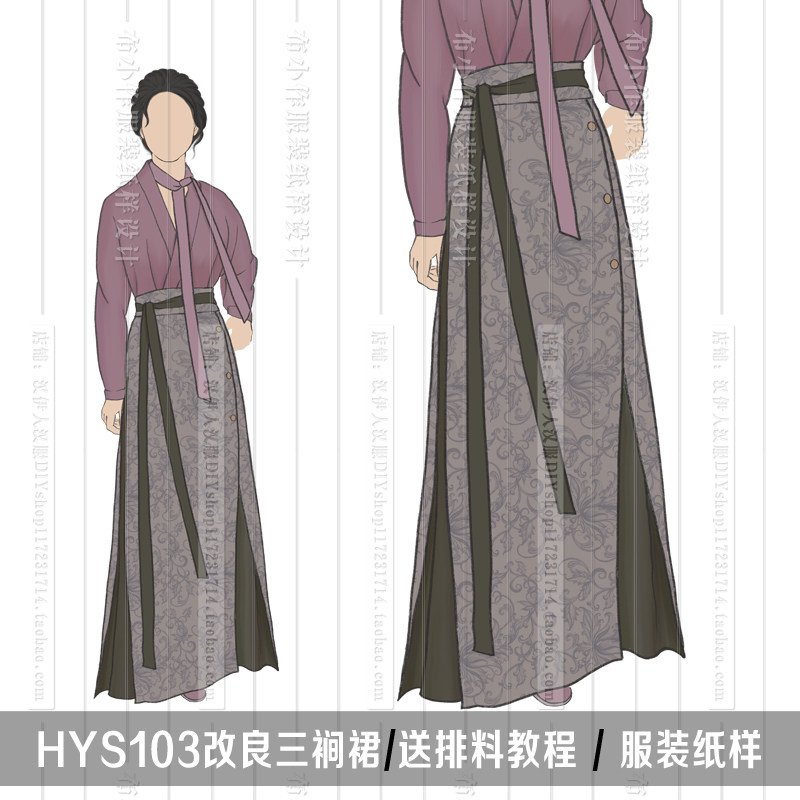 1:1实物纸样 间色四破三裥裙 汉元素对襟衫汉服纸样汉伊人手工diy