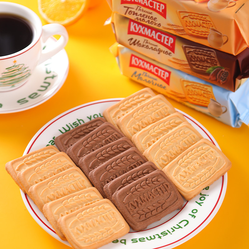 俄罗斯原装进口早餐饼干牛奶巧克力味老式微甜酥脆零食0反式食品