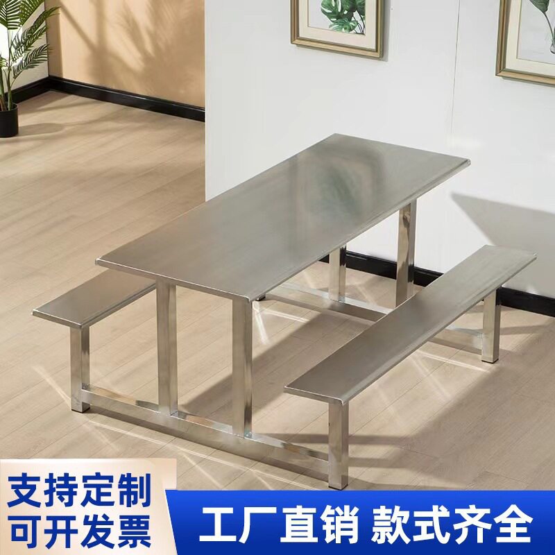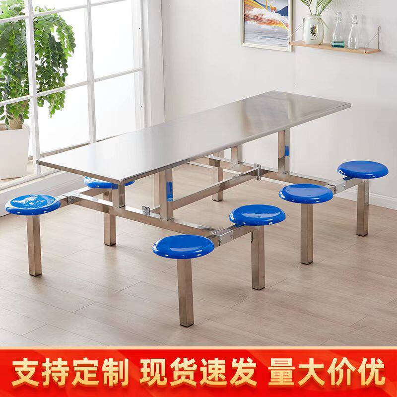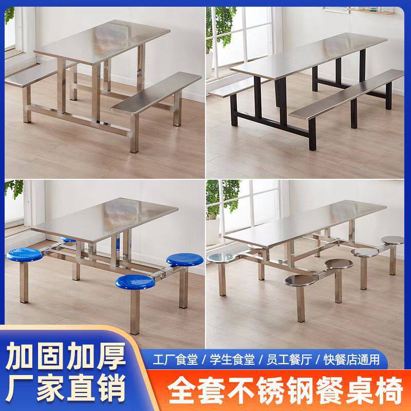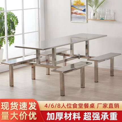 不锈钢食堂餐桌椅小吃餐厅8人员工厂学生校4人6人2快餐店连体餐桌