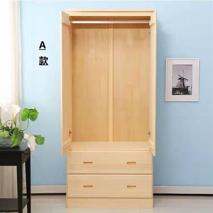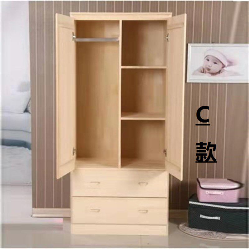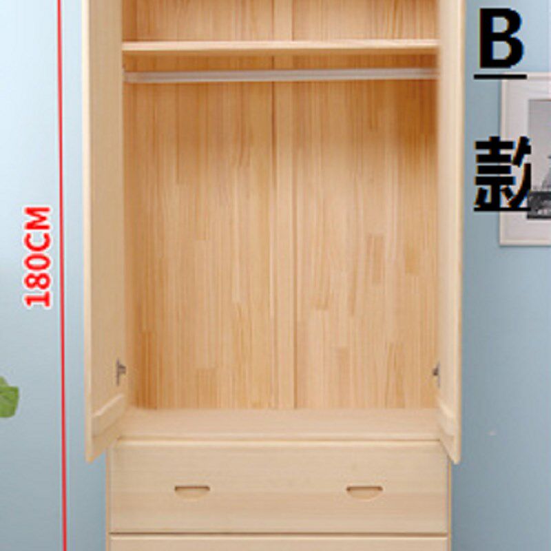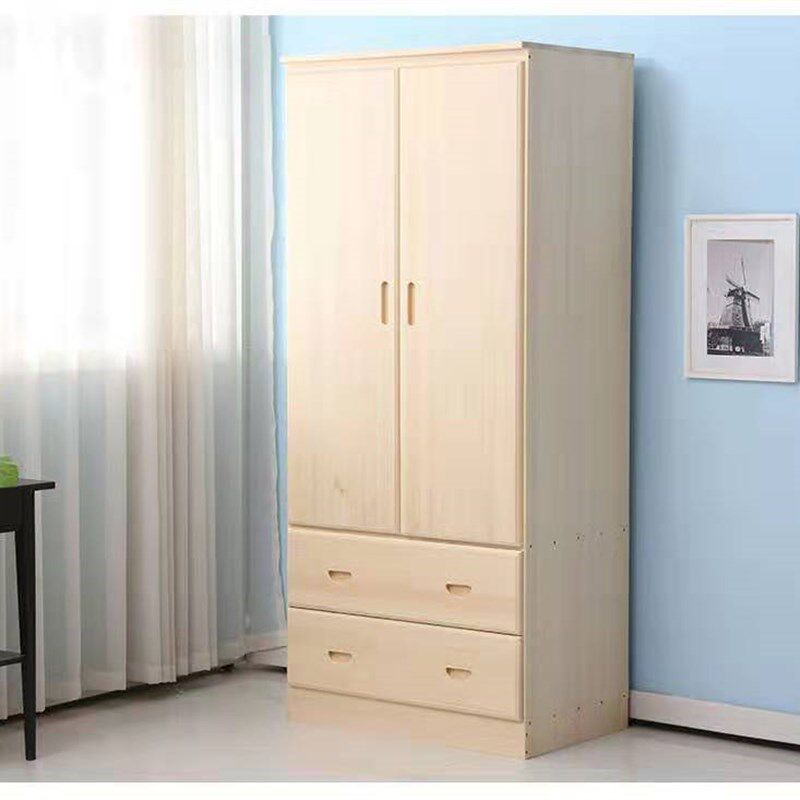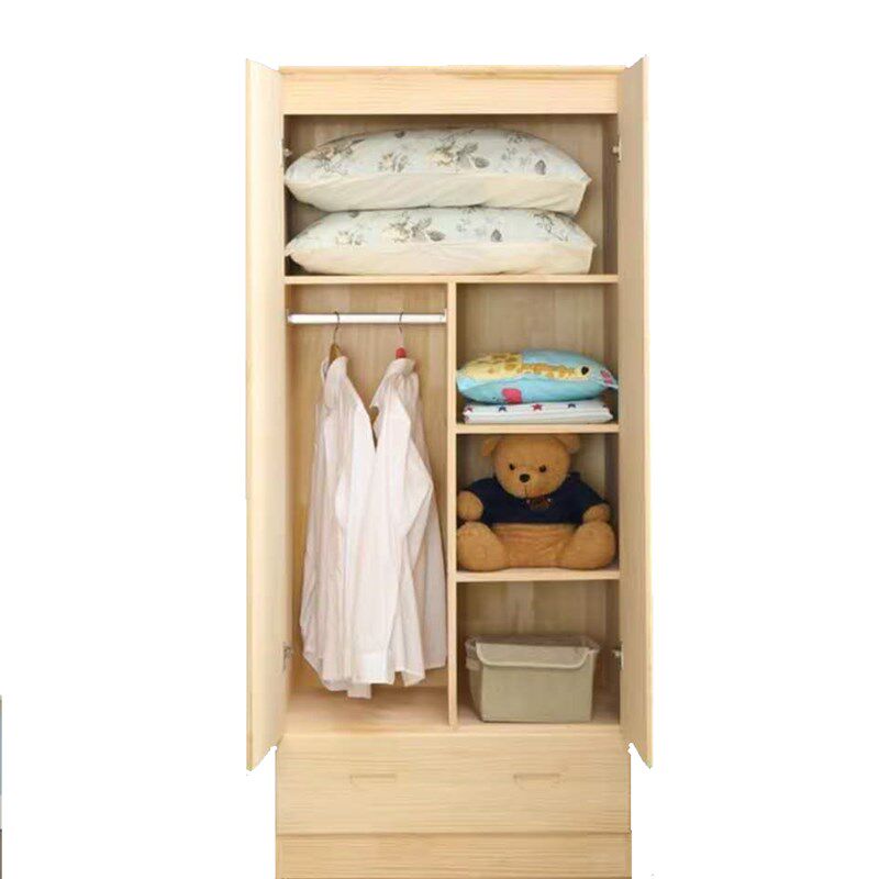 简约成人实木衣柜儿童两门收纳柜双开门松木衣橱卧室整体衣柜定制