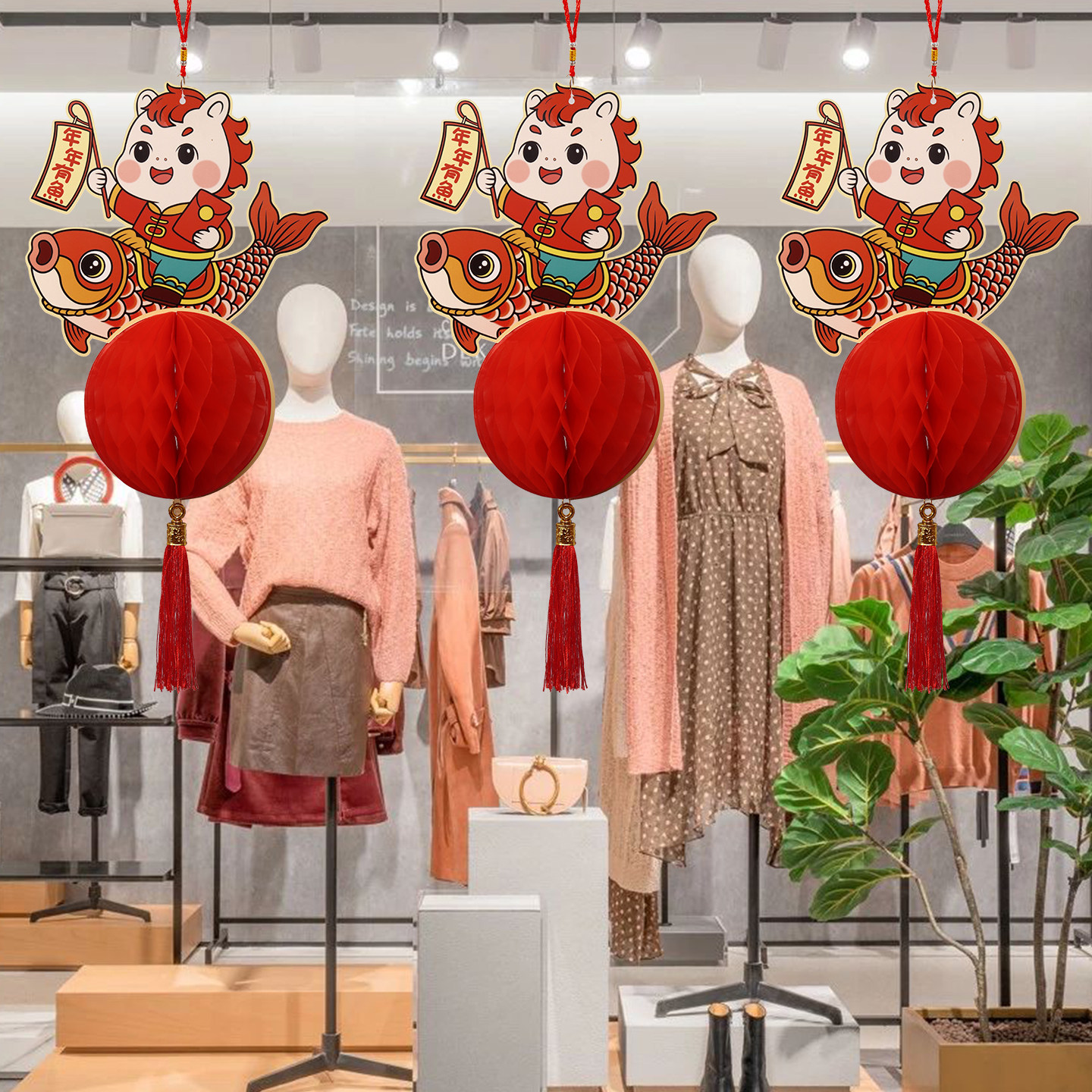 蜂窝灯笼立体挂件2026马年新款新年挂饰装饰春节过年门口布置醒狮