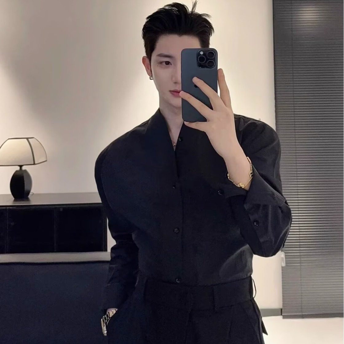 立领衬衫男长袖潮流帅气休闲