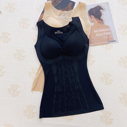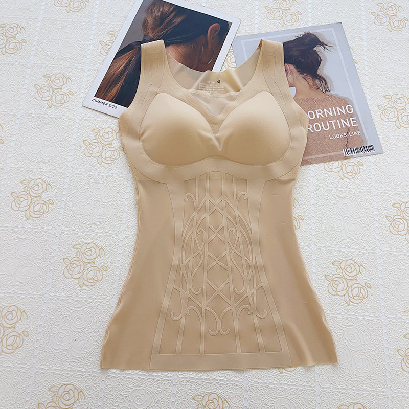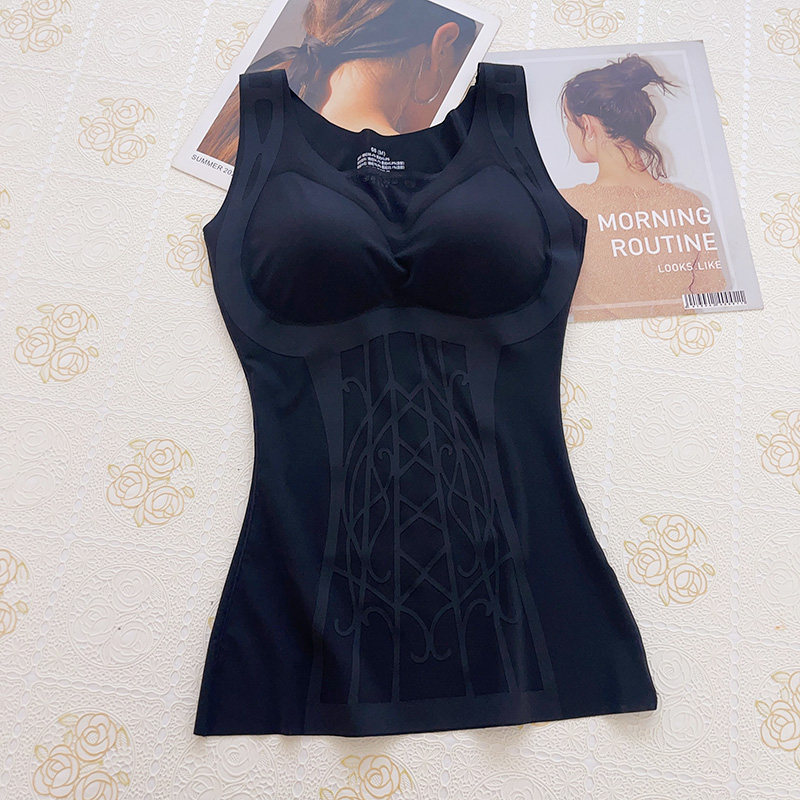 古妃无痕雕花美体塑身背心女带胸垫吊带聚拢上衣打底薄款冰丝内搭