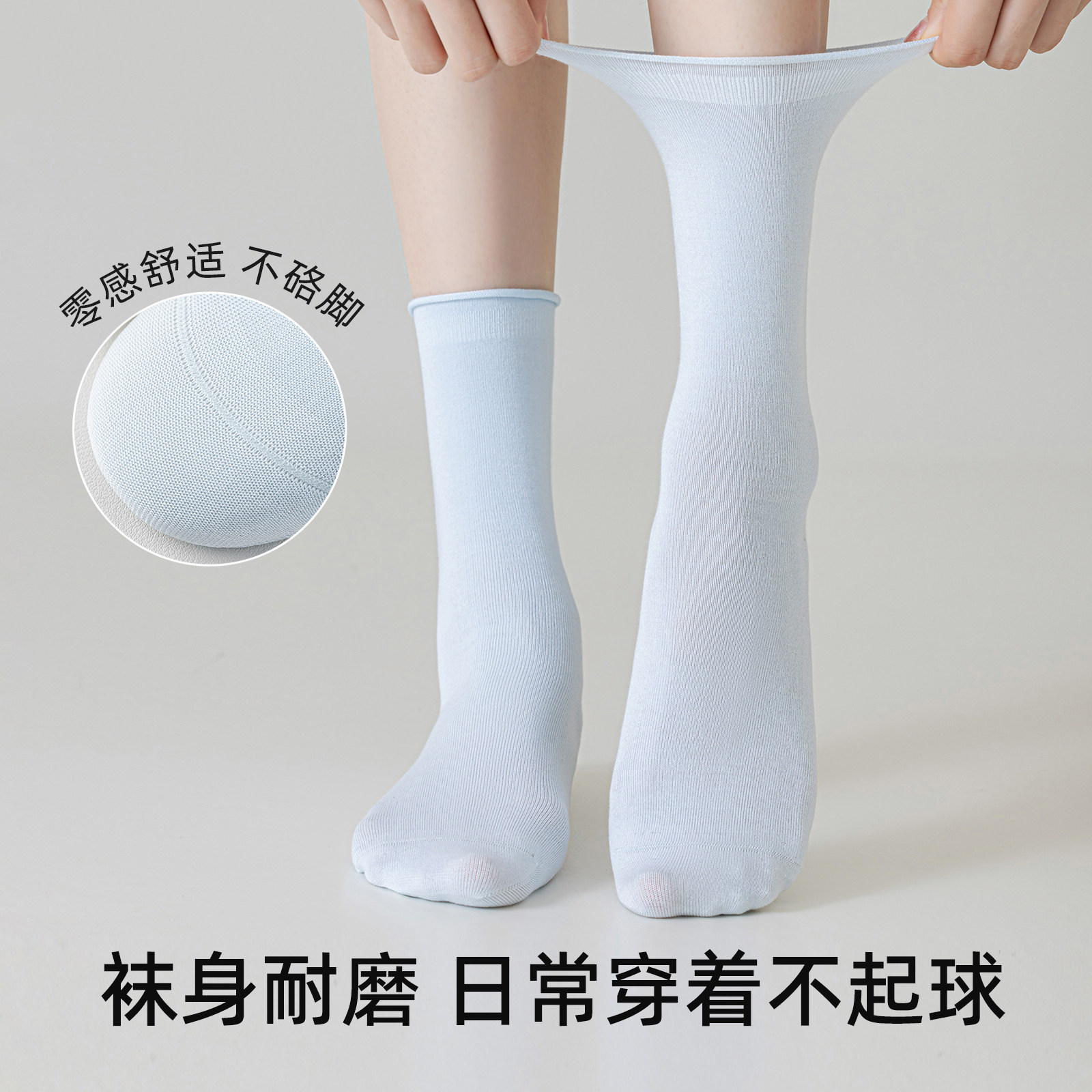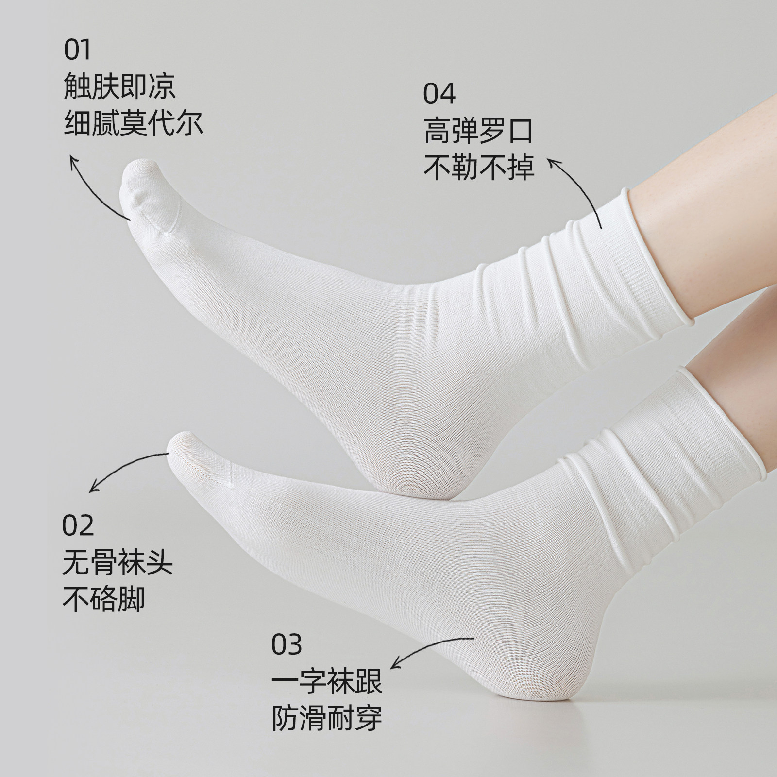 莫代尔冰冰袜子女夏季薄款堆堆袜配小皮鞋夏天紫色中筒月子袜防滑