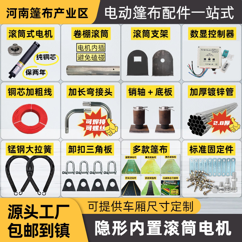 渣土车自动篷布甩杆全套配件自卸翻斗车遥控防风耐磨加厚电动卷棚
