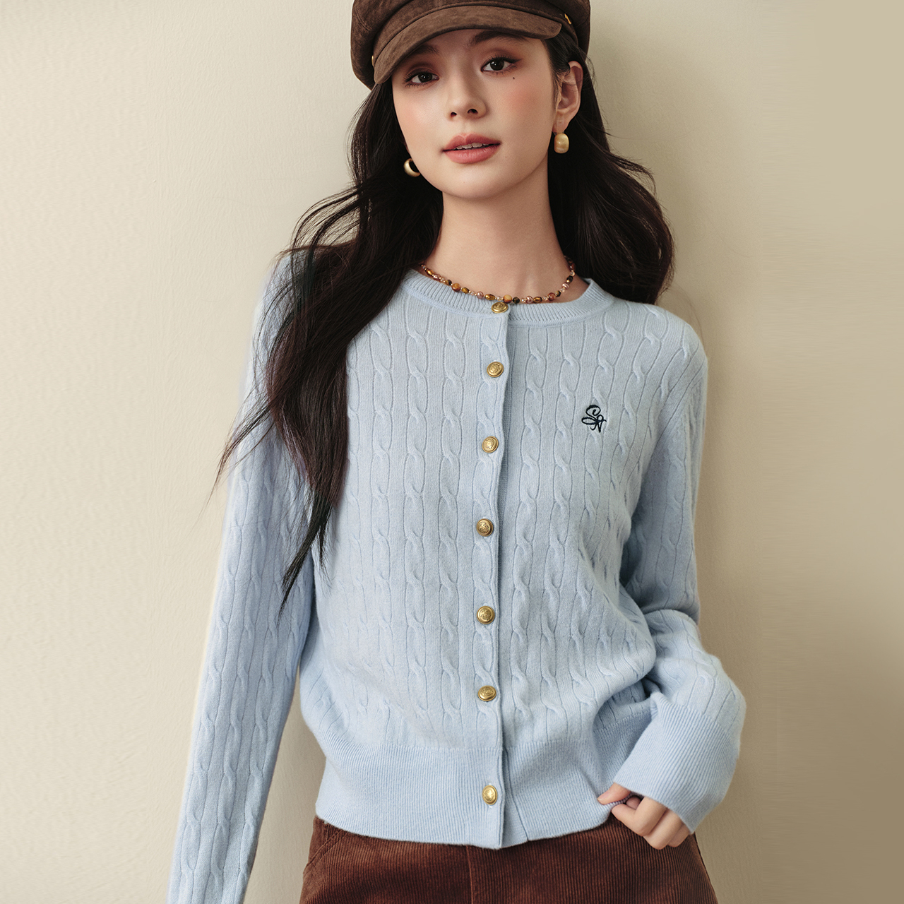 诗凡黎刺绣绞花针织开衫25秋全羊毛老钱风毛衣女伊芙丽outlets店