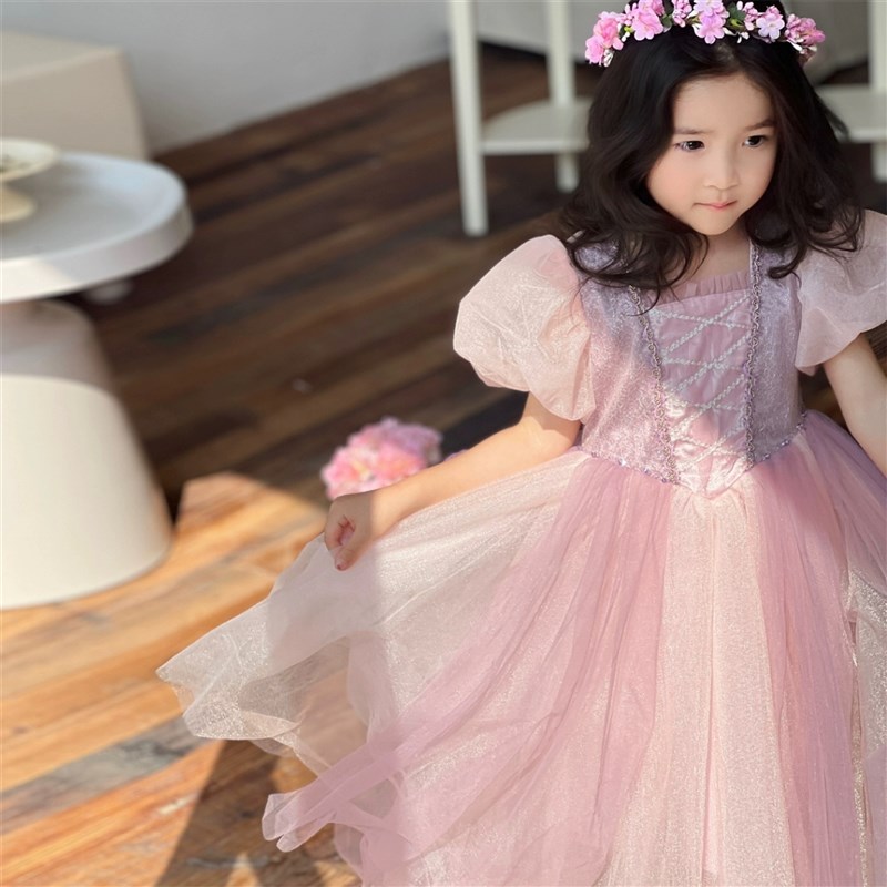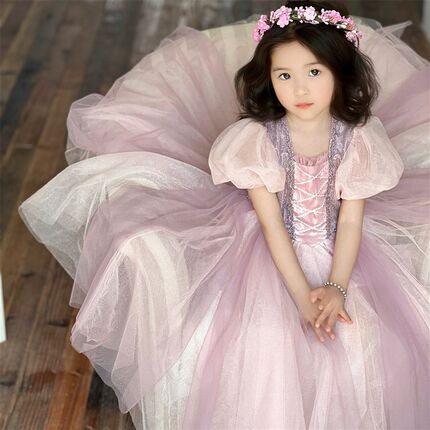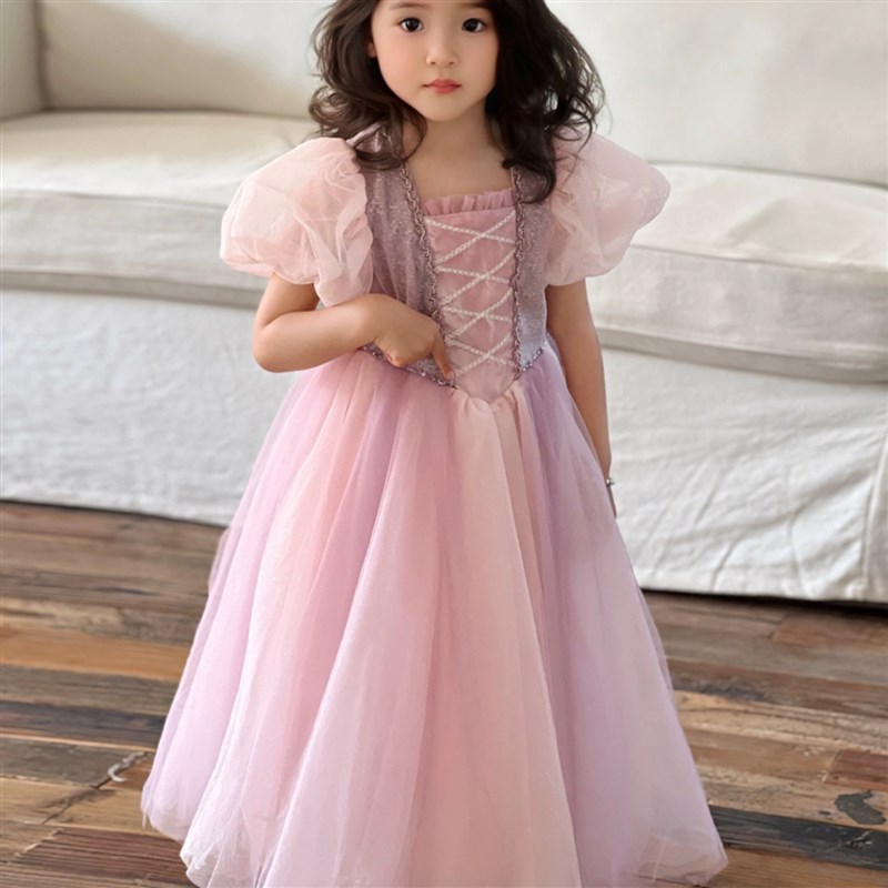 乐佩长发公主裙女童2024夏季新款六一礼服女孩蓬蓬纱裙儿童连衣裙