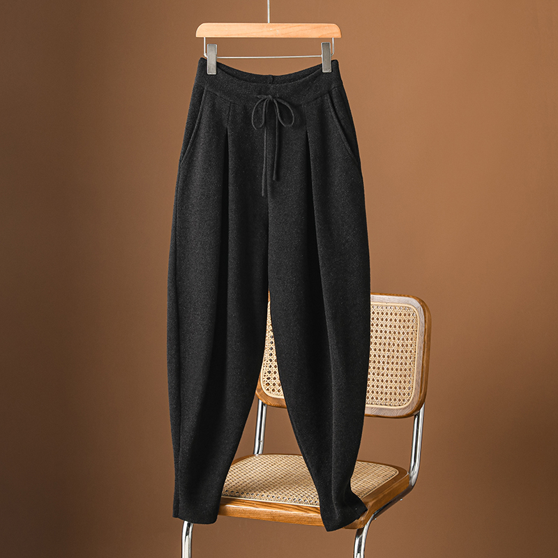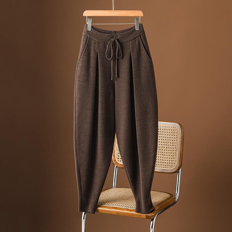 重磅羊绒哈伦裤女秋冬2024新款宽松显瘦弯刀裤加厚高腰马丁靴裤子