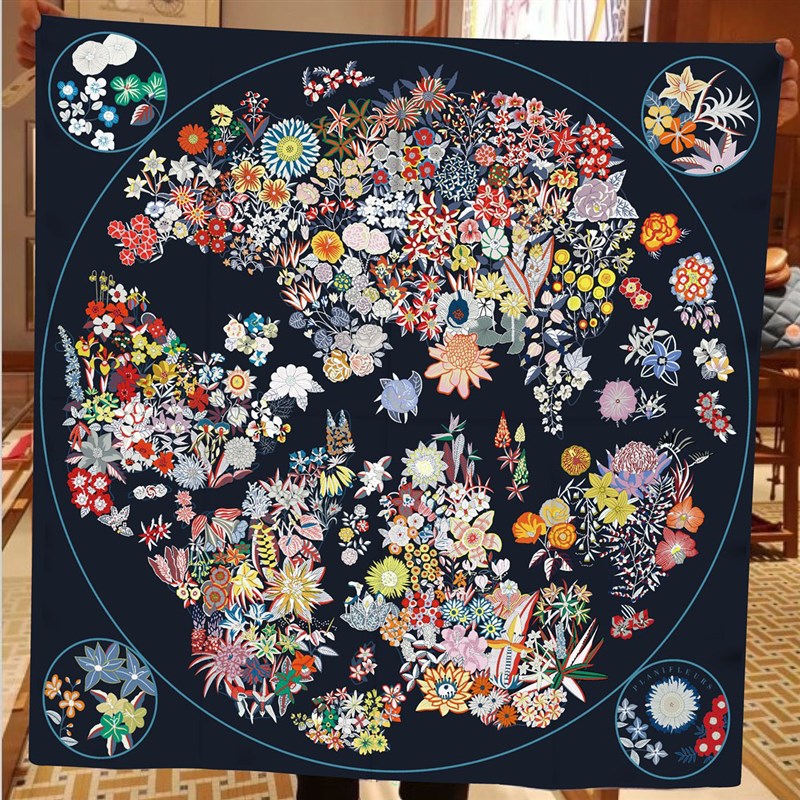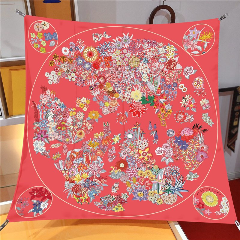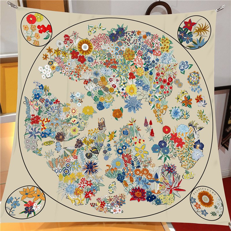 【花卉地图】春秋新款绸缎丝巾女印花90cm大方巾时尚百搭披肩围巾
