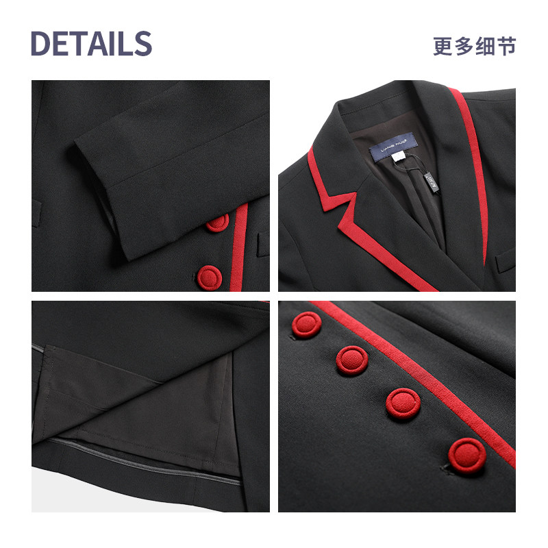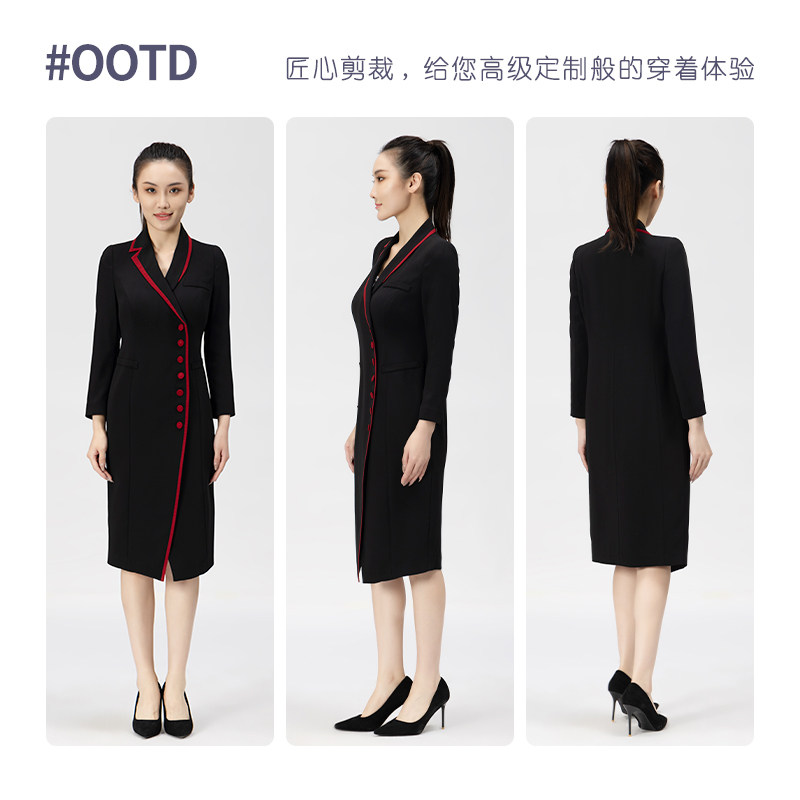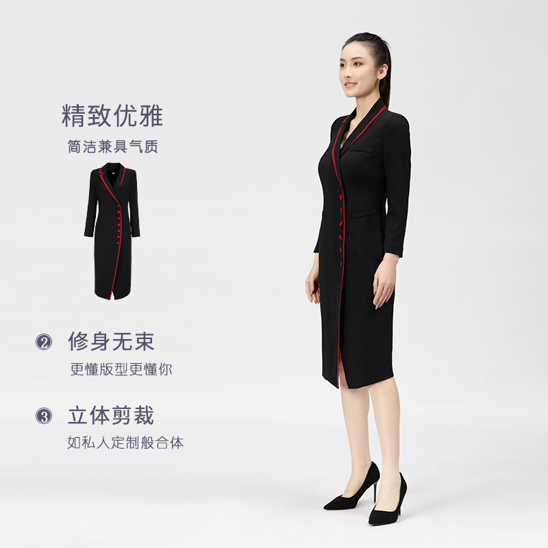 [精致礼服]靓诺黑色红边长袖连衣裙年轻妈妈中国风洋气LL21341B