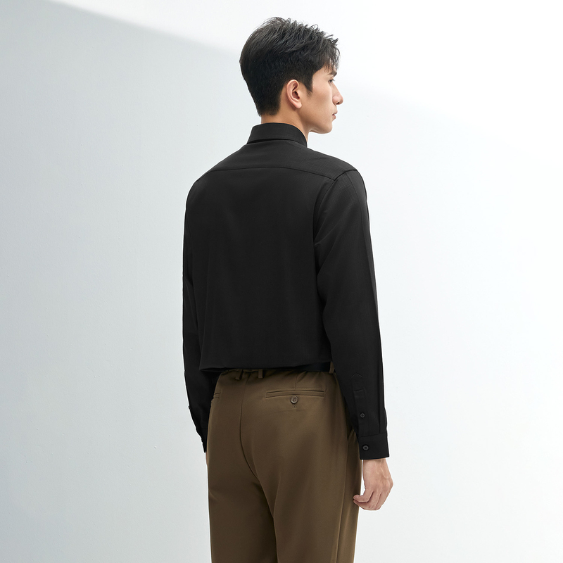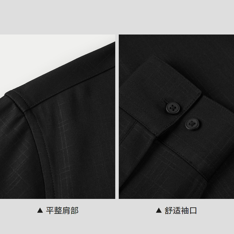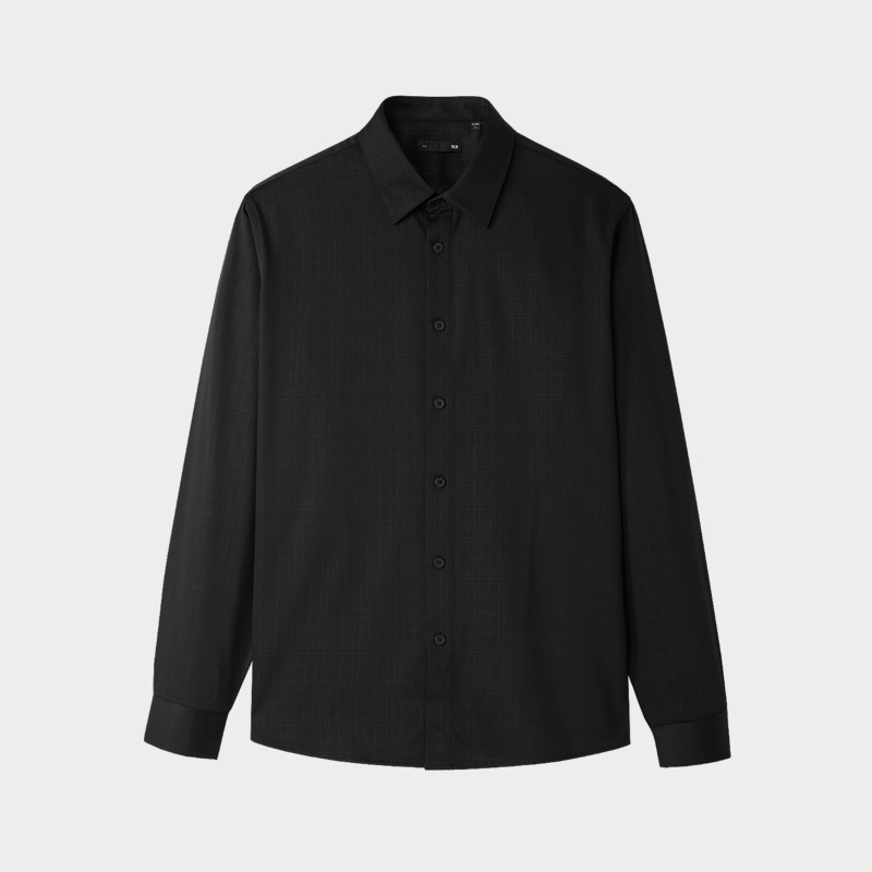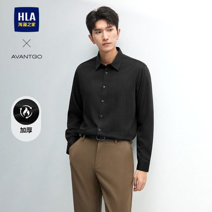 HLA/海澜之家轻商务加厚款黑衬衫24秋冬新厚拉毛暗格纹保暖上衣男