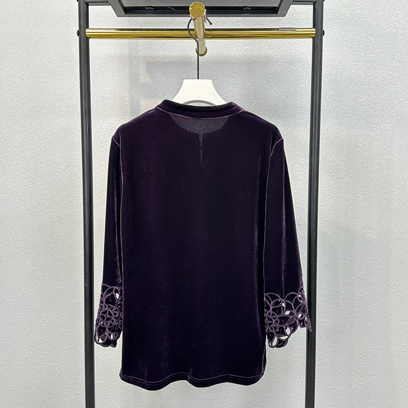 镂空刺绣丝绒上衣中老年妈妈装新款小衫旗袍领打底衫秋季新款内搭