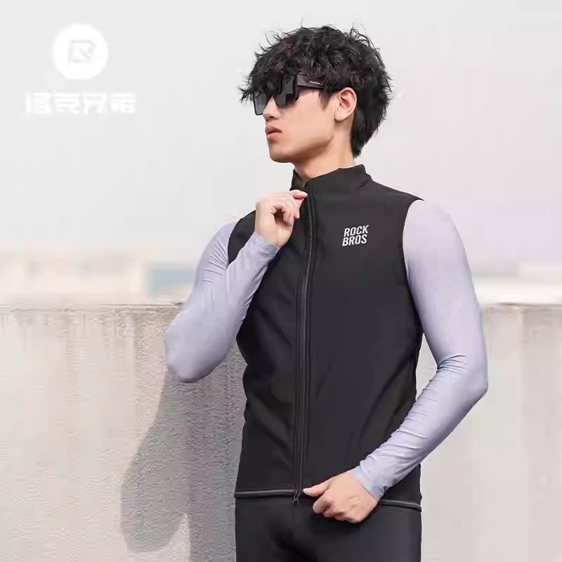 洛克兄弟骑行马甲抓绒防风背心男保暖公路山地自行车服装无袖上衣