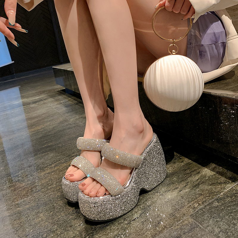 小个子厚底坡跟凉拖鞋女夏季新款网红风时尚外穿高跟一字拖潮