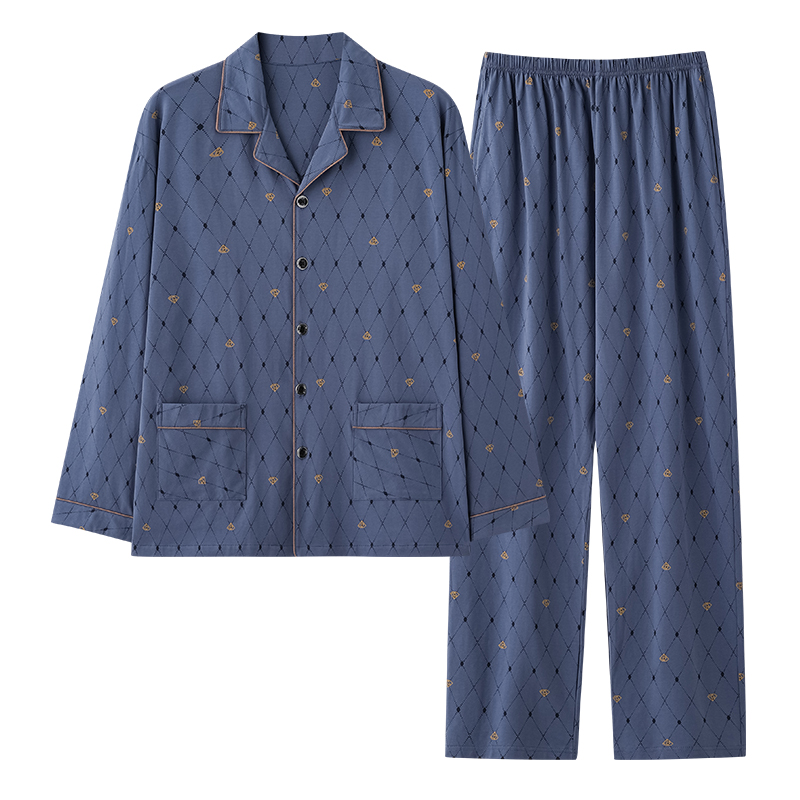 浪莎纯棉睡衣男士春秋季2025新款长袖青少年加大码开衫家居服套装