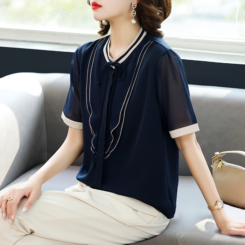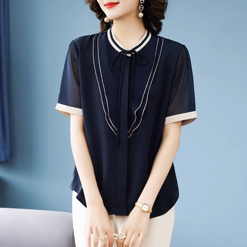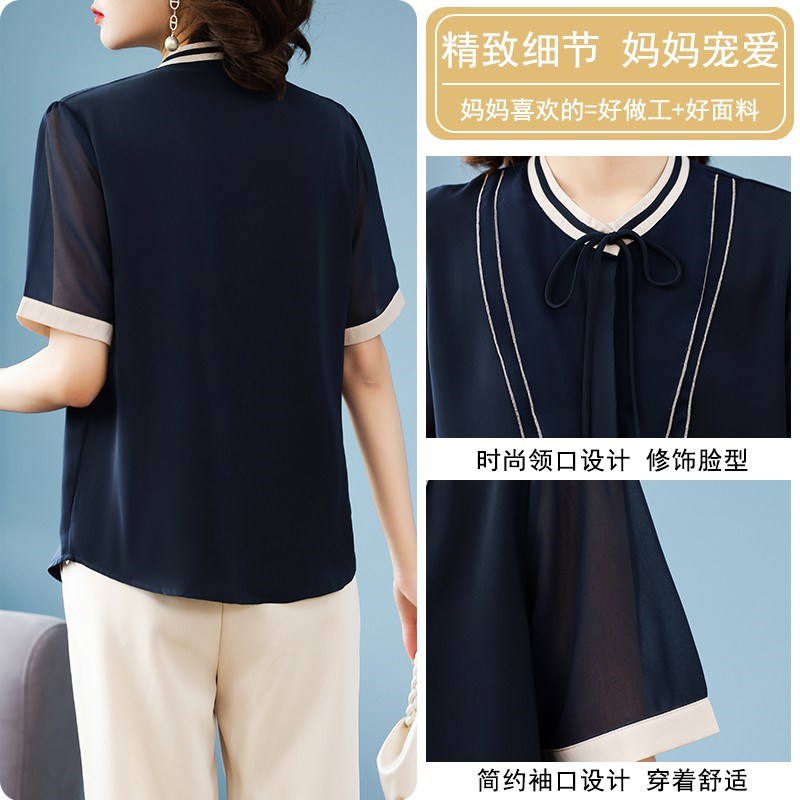 母亲节妈妈夏装雪纺衬衫中年女短袖T恤上衣服40岁中老年时尚套装
