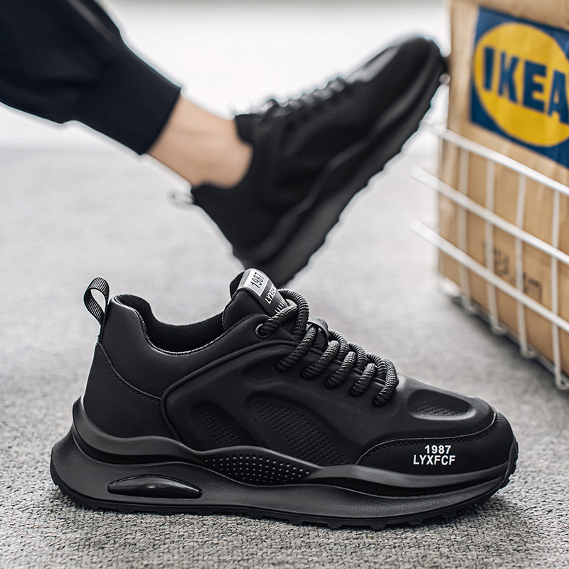 黑武士男鞋2026新款冬季厚底黑色休闲运动老爹鞋后厨防滑工作潮鞋
