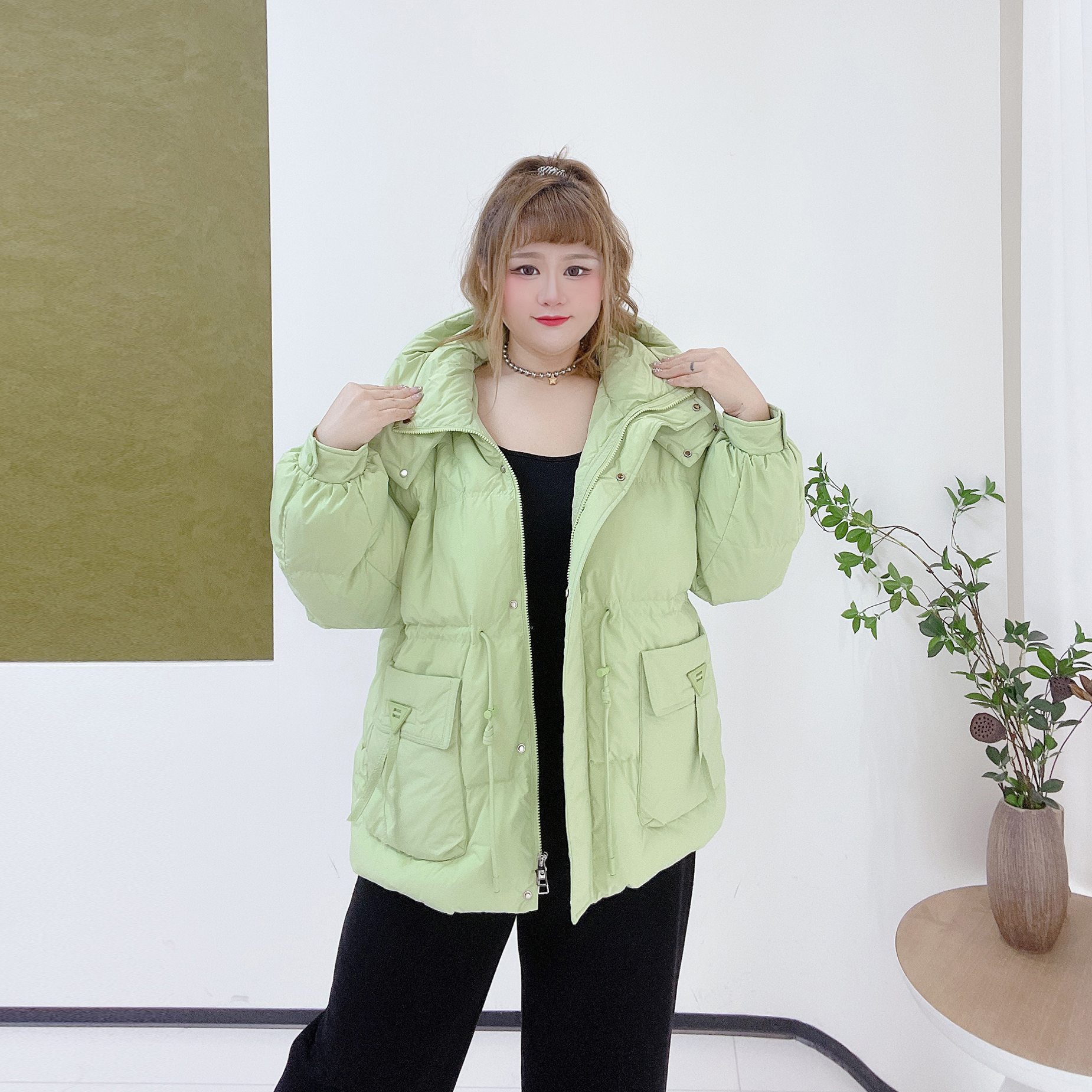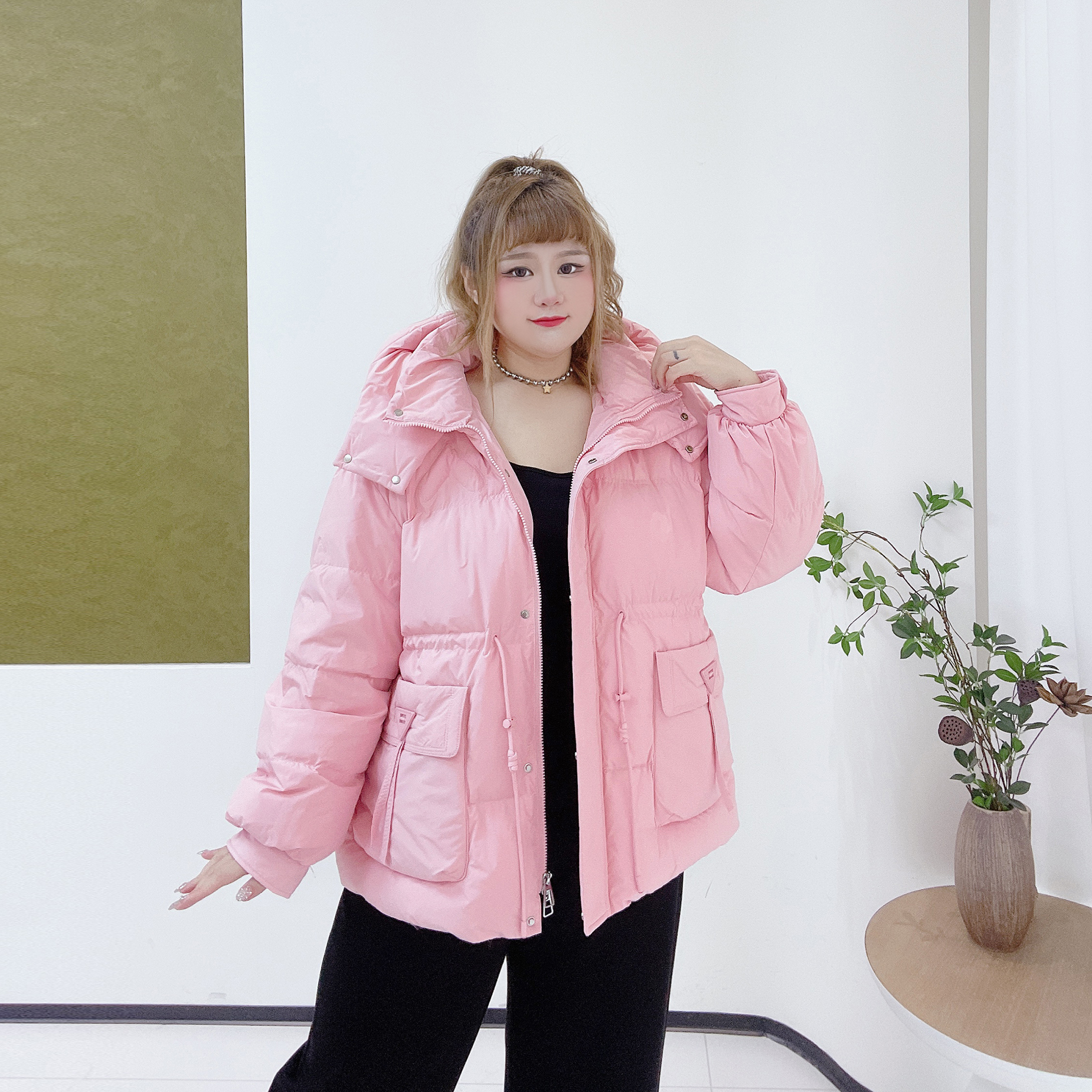 中长款收腰加厚冬季连帽外套胖莹莹大码女装多巴胺少女减龄羽绒服
