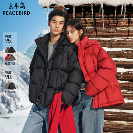 太平鸟男装压胶衬衫休闲羽绒/95%绒轻蓬羽绒面包服防寒保暖羽绒服