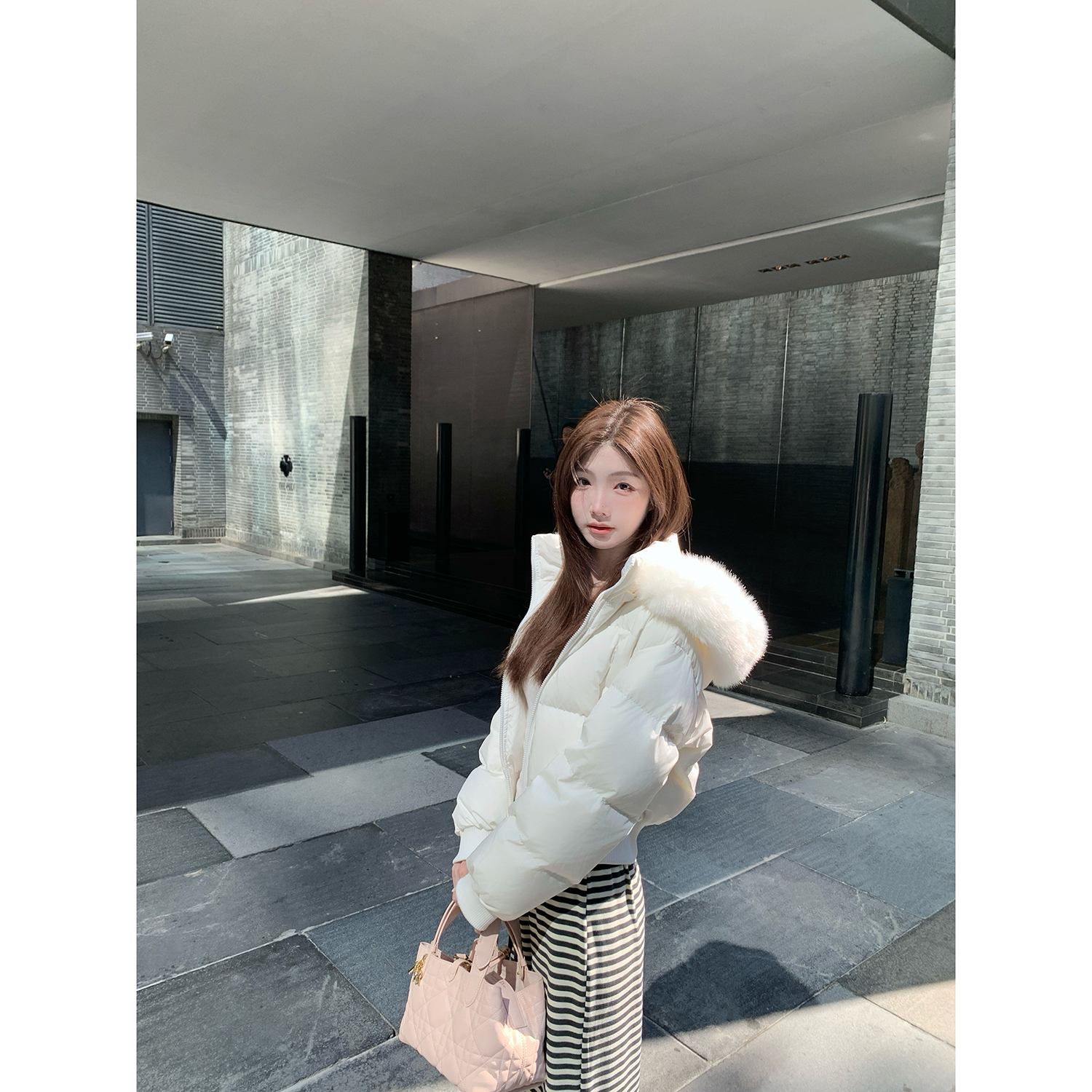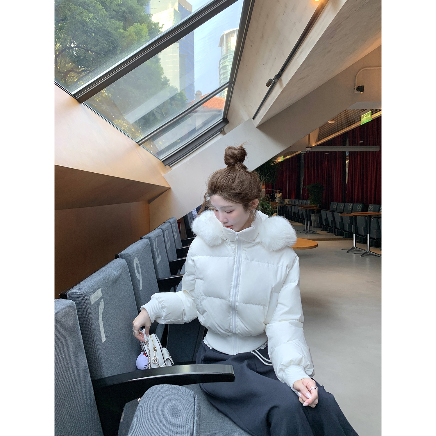 jijilulu积极璐 10.20/20点 瑞士雪夜 大毛领保暖羽绒服短款修身