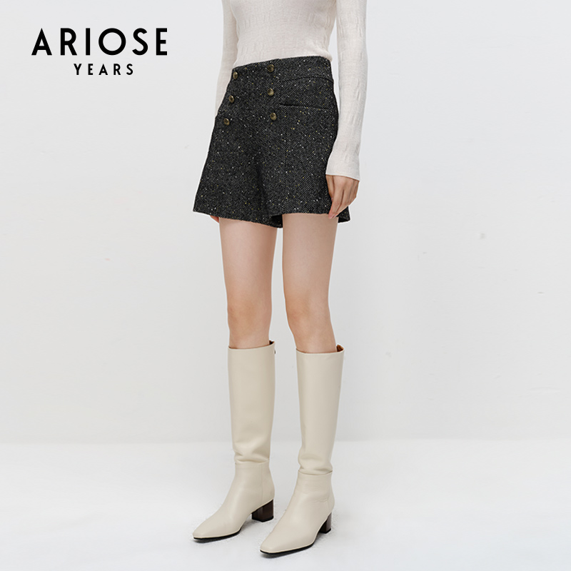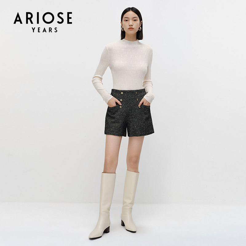 艾诺丝雅诗冬款亮丝花呢时尚高腰小个子短裤外穿女11033030