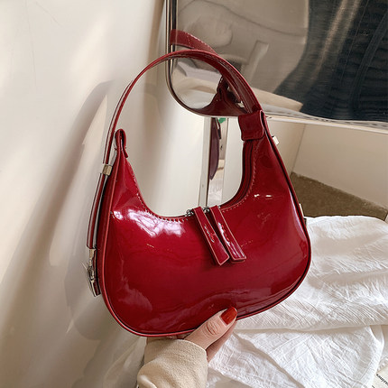 小众红色包包女新款2026时尚高级感单肩包流行爆款洋气漆皮腋下包