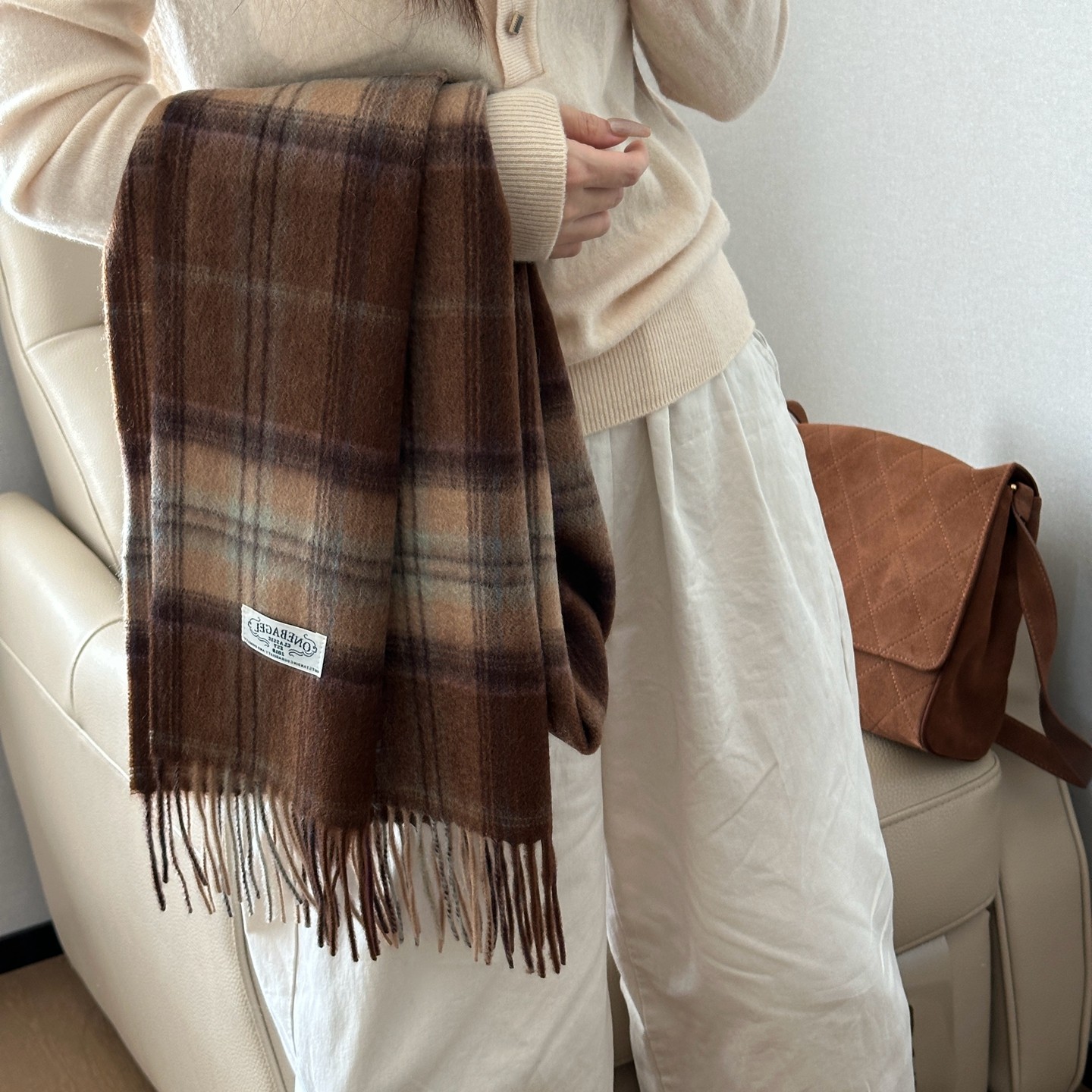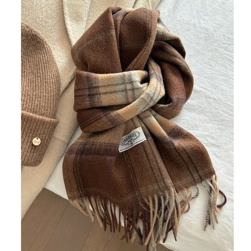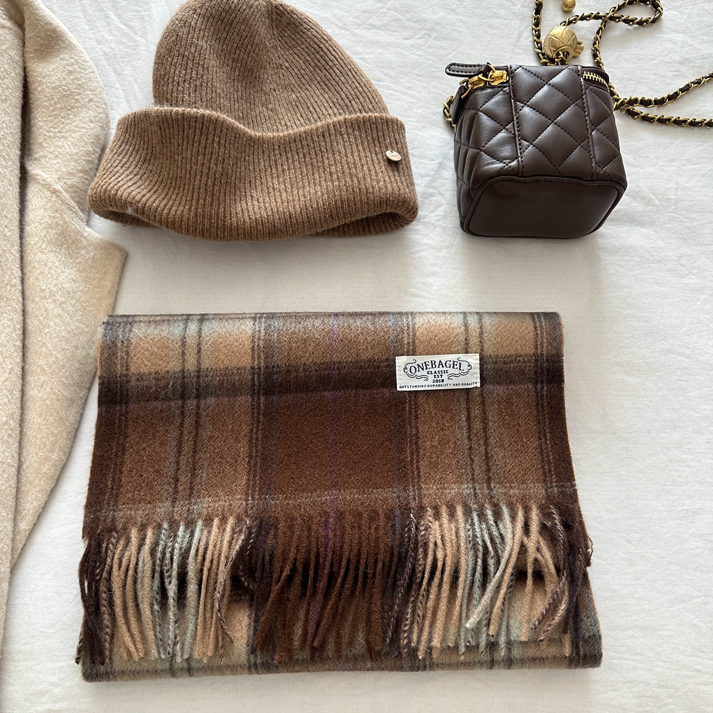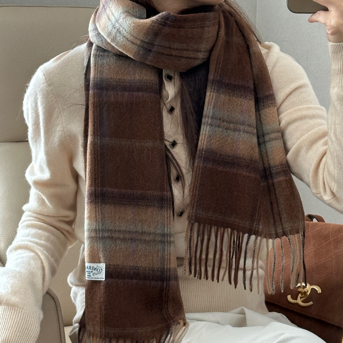 25秋冬/美拉德棕色系英伦风格纹围巾100%wool羊毛复古格子披肩女