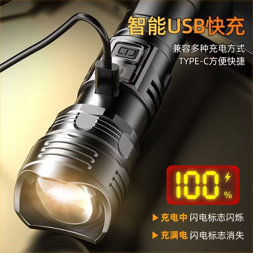 公牛适用强光LED手电筒变焦充电长续航超亮远射户外便携防水家用