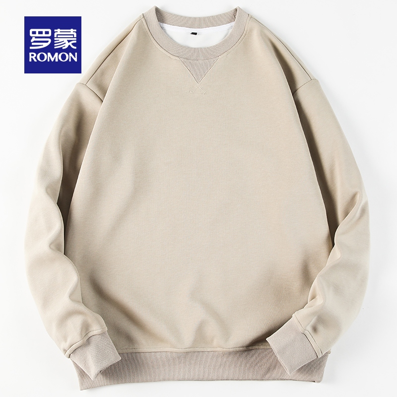 罗蒙男士时尚休闲圆领长袖卫衣2025春季新款宽松百搭纯色上衣N1Z