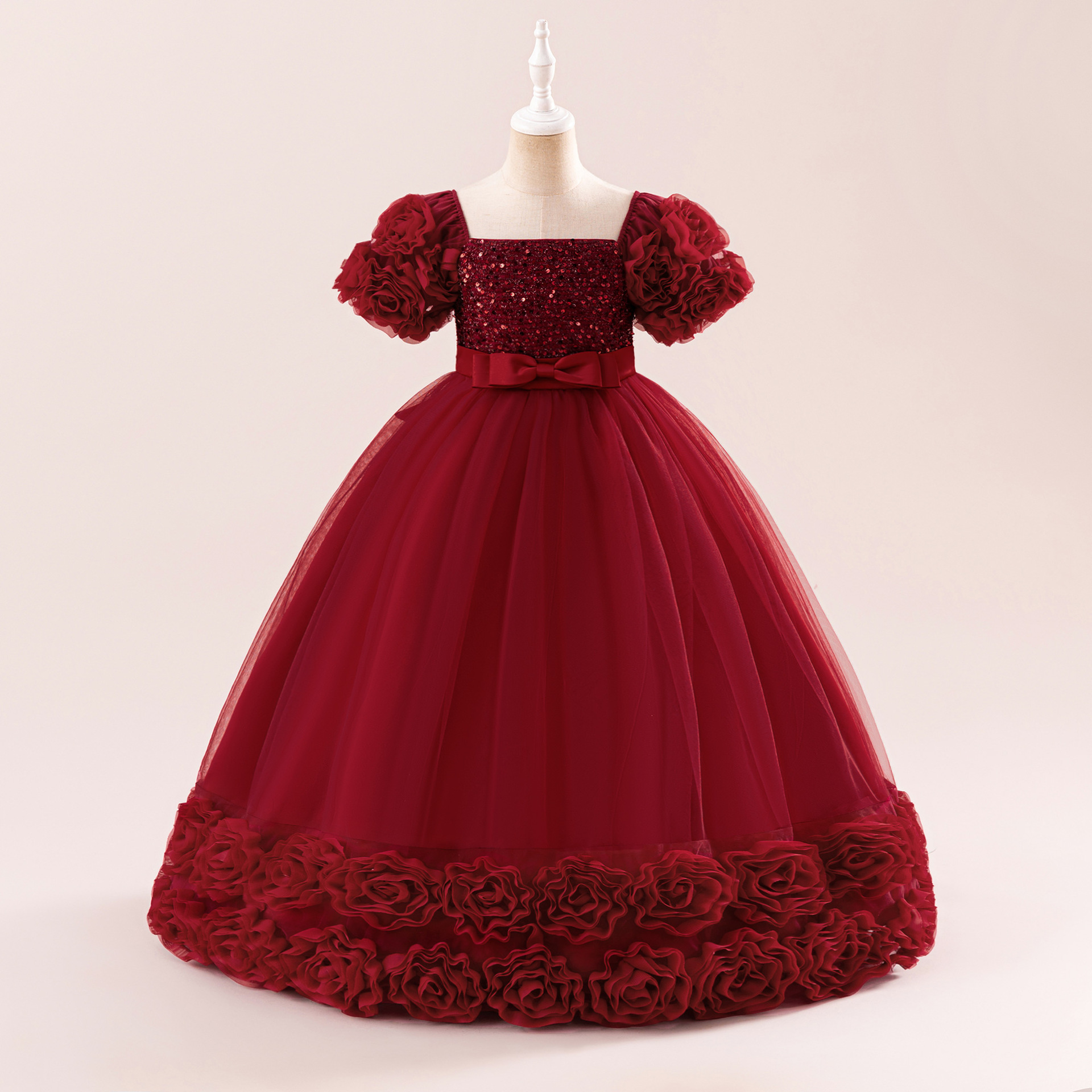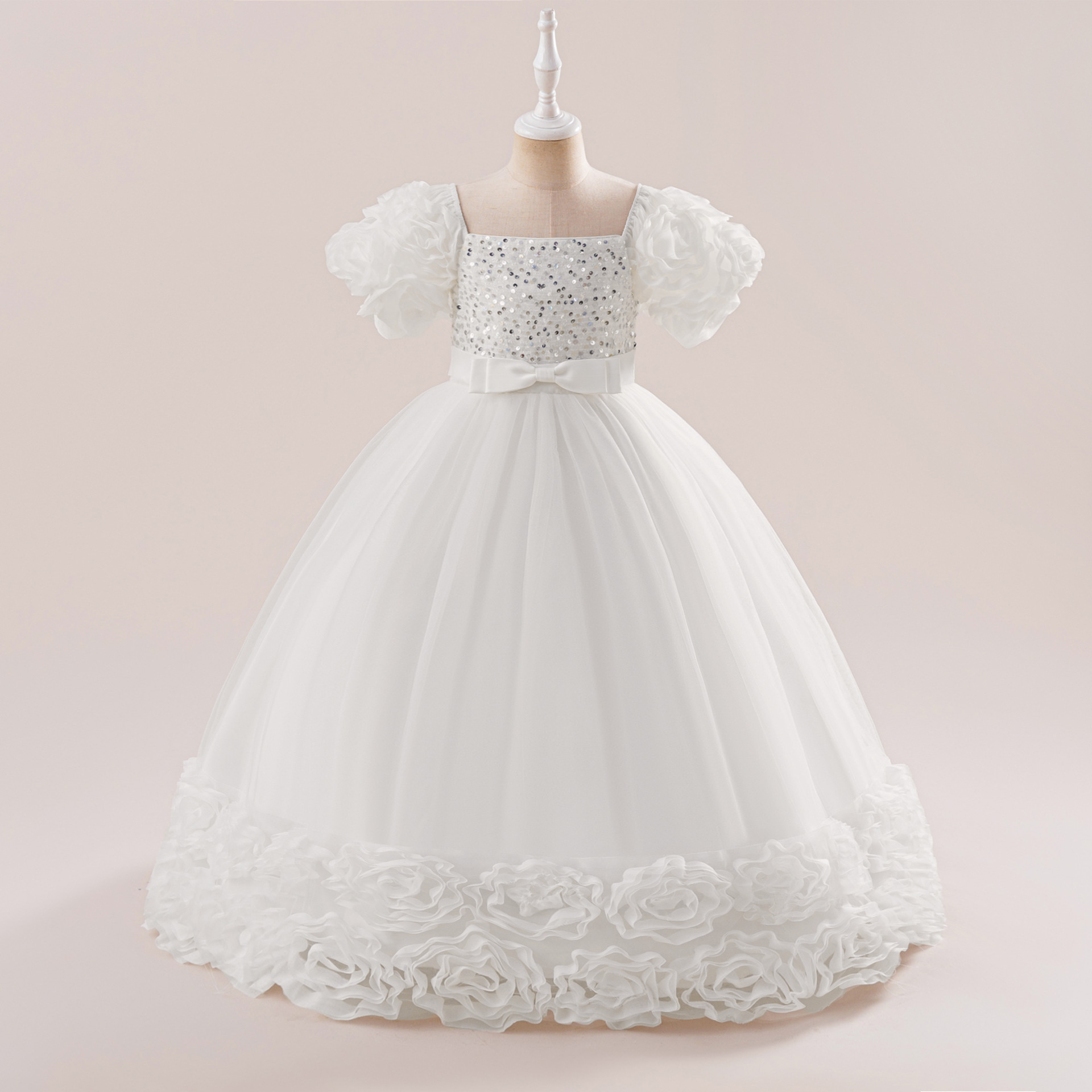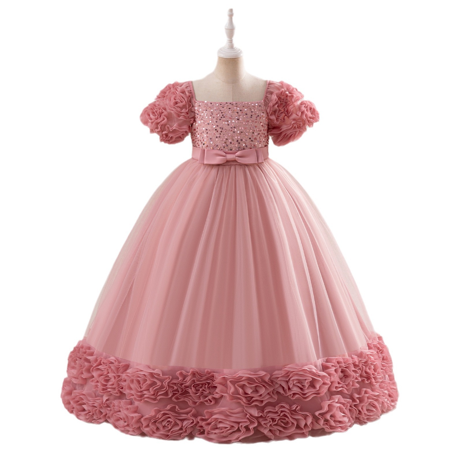 欧美新款女童礼服公主裙儿童亮片婚纱礼服裙中大童生日宴会