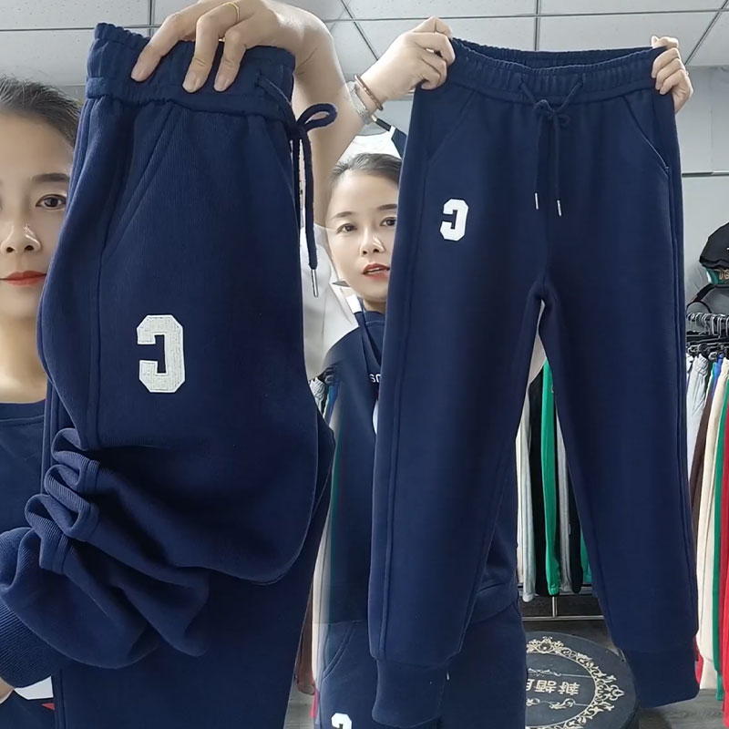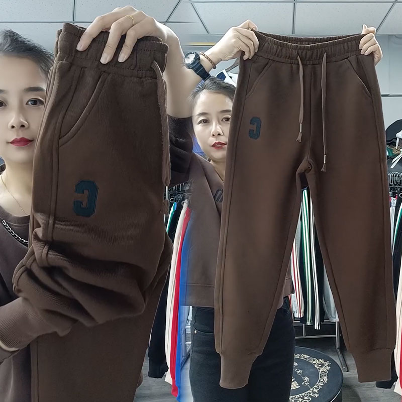 欧货2025冬季新款加绒加厚卫裤女高腰束脚休闲裤显瘦运动裤哈伦裤