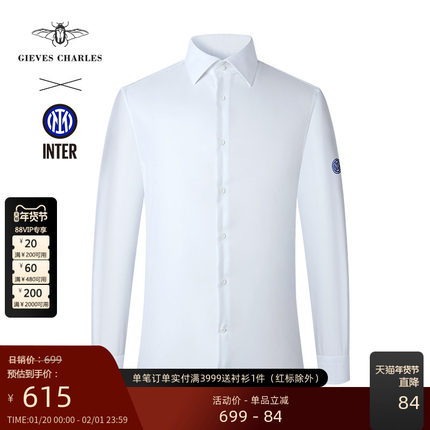 国际米兰官方授权GIEVES CHARLES国米足球俱乐部徽章白色衬衫男