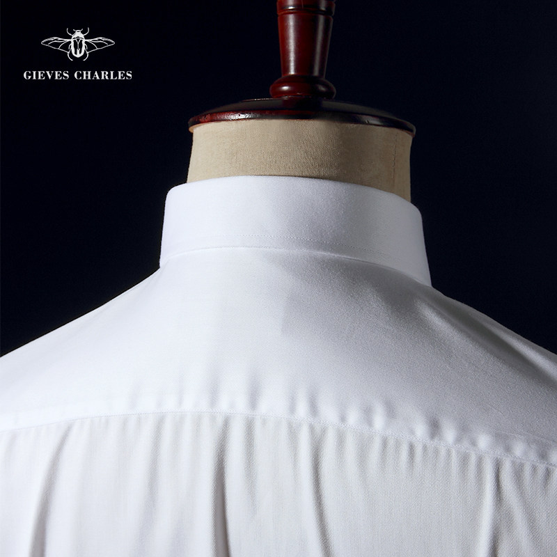 富绅中式白色男立领长袖衬衫修身青年中山装衬衣商务春秋季纯色衬