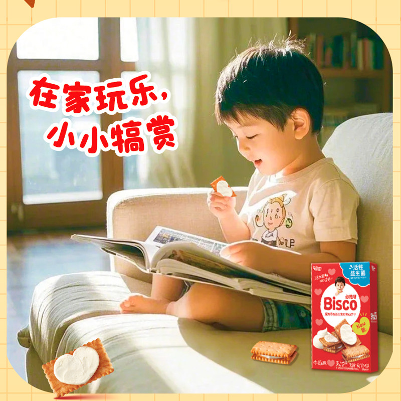 格力高Bisco必思可活性益生菌夹心饼干6盒牛奶味草莓味巧克力味