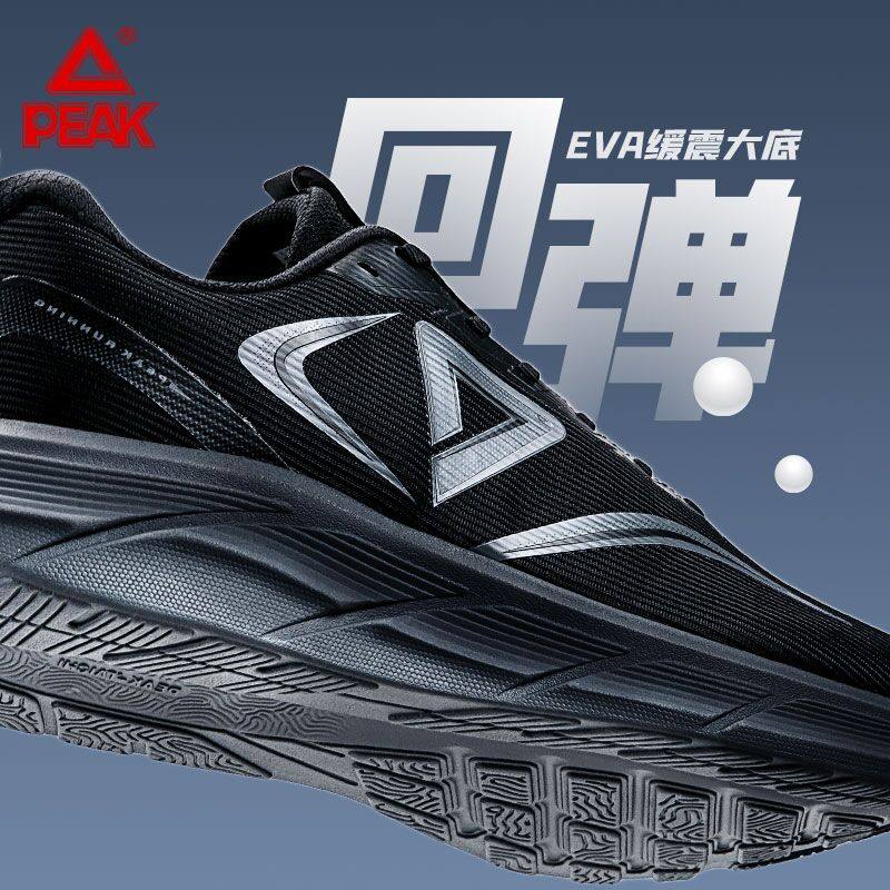 匹克男子轻便黑色休闲通勤慢跑鞋