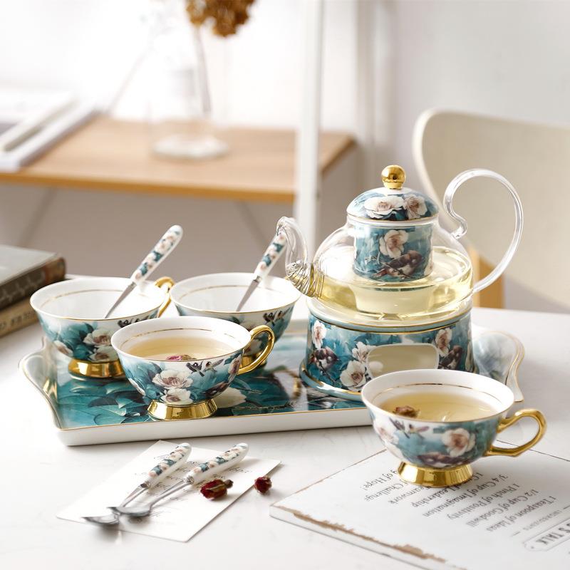 杜鹃鸟陶瓷玻璃加热具花茶壶套装带欧过滤式下茶茶ZTO保温泡茶午