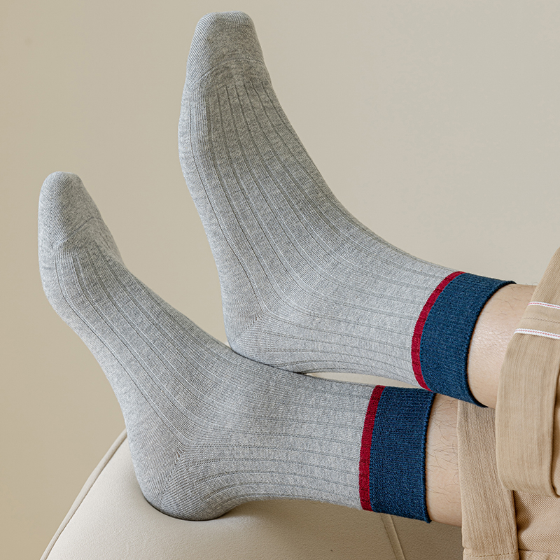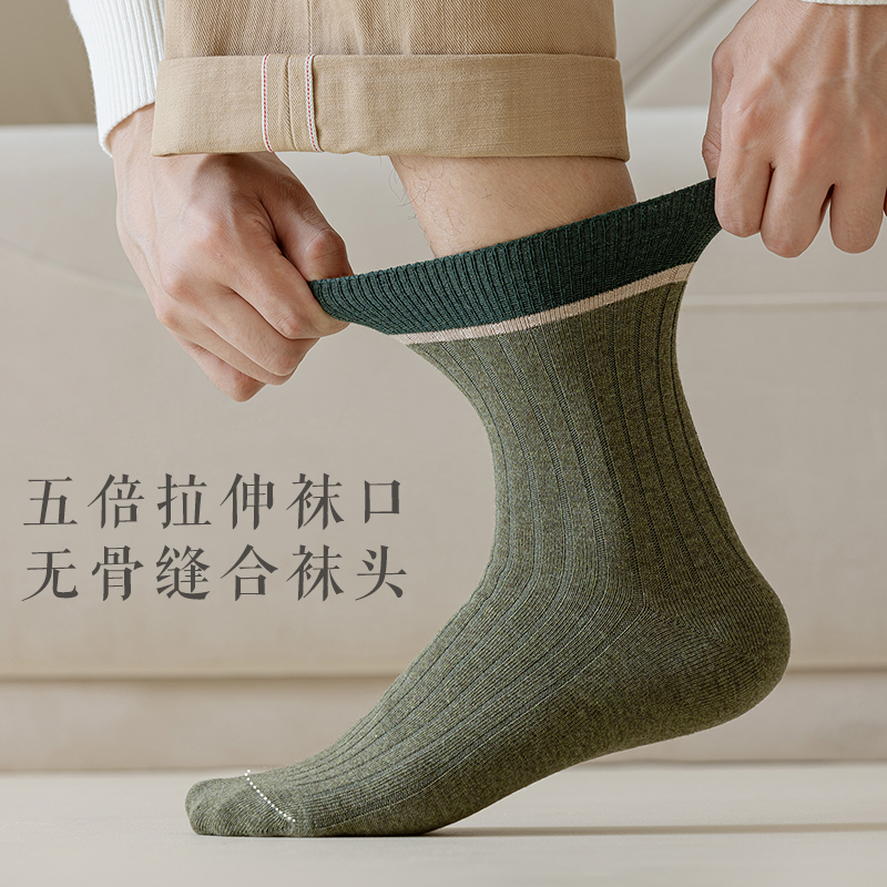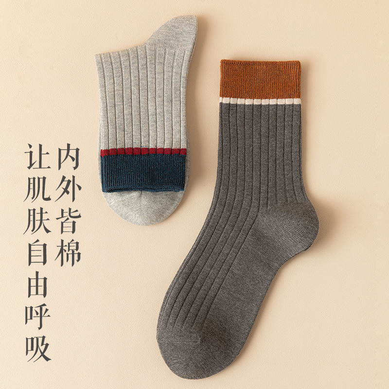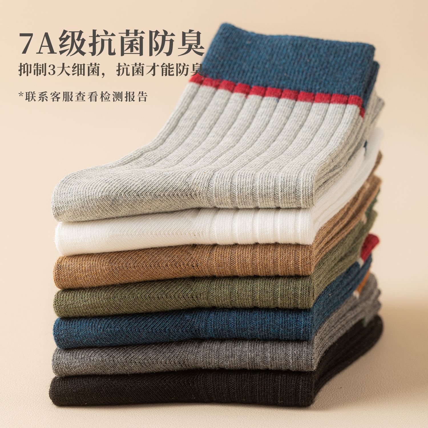 袜子男春秋季男士中筒全棉抗菌防臭条纹纯棉运动款冬款吸汗长筒袜