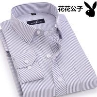 夏秋季休闲全棉条纹衬衣服宽松薄款寸衫爸爸男装中年男士长袖衬衫